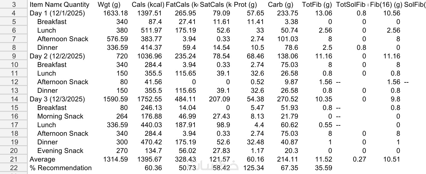 حساب الاستهلاك اليومي للغذاء عبر برنامج Aisha Food Process