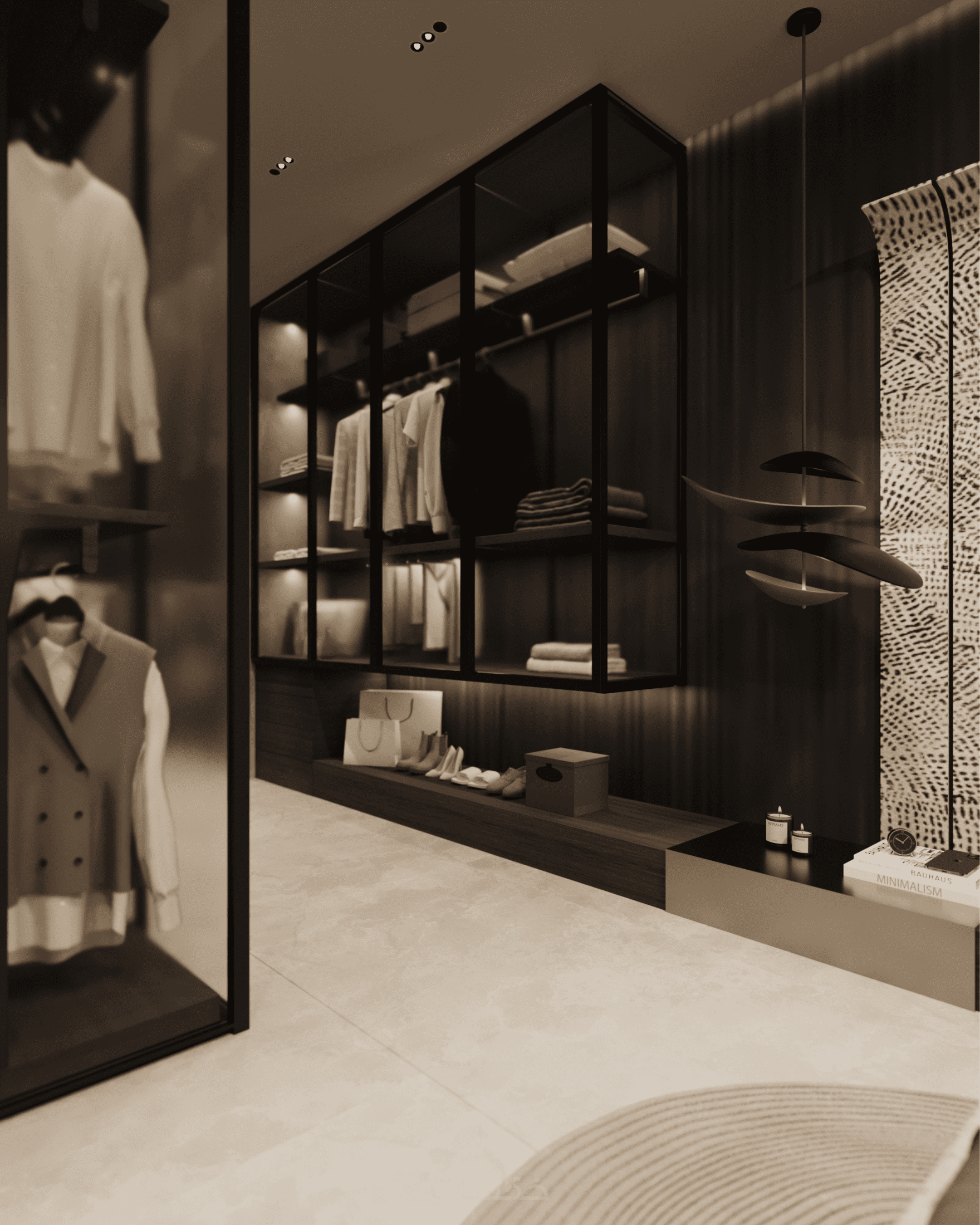 تصميم داخلي لاي فراغ غرفة معيشة-غرفة نوم-غرفة ملابس