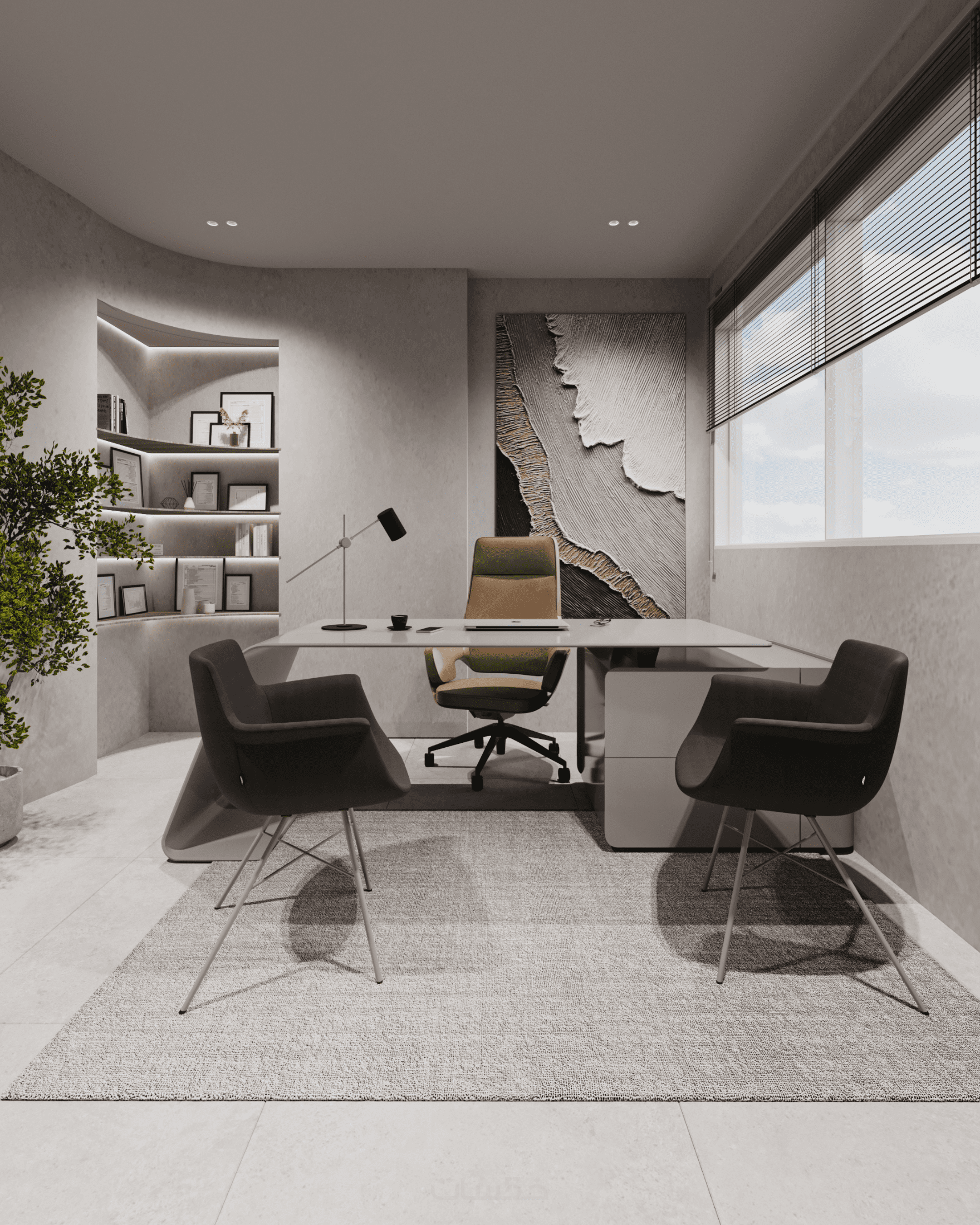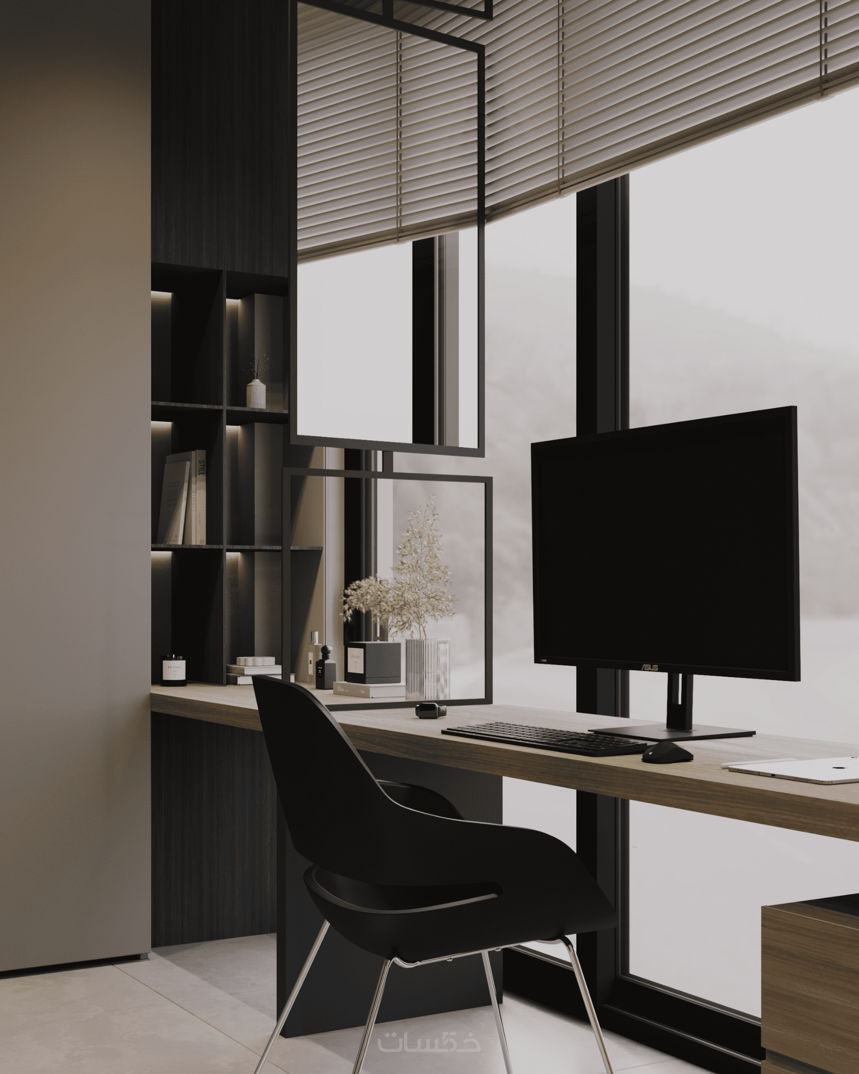 تصميم داخلي ثلاثي الأبعاد غرفة مكتب بجودة واقعية