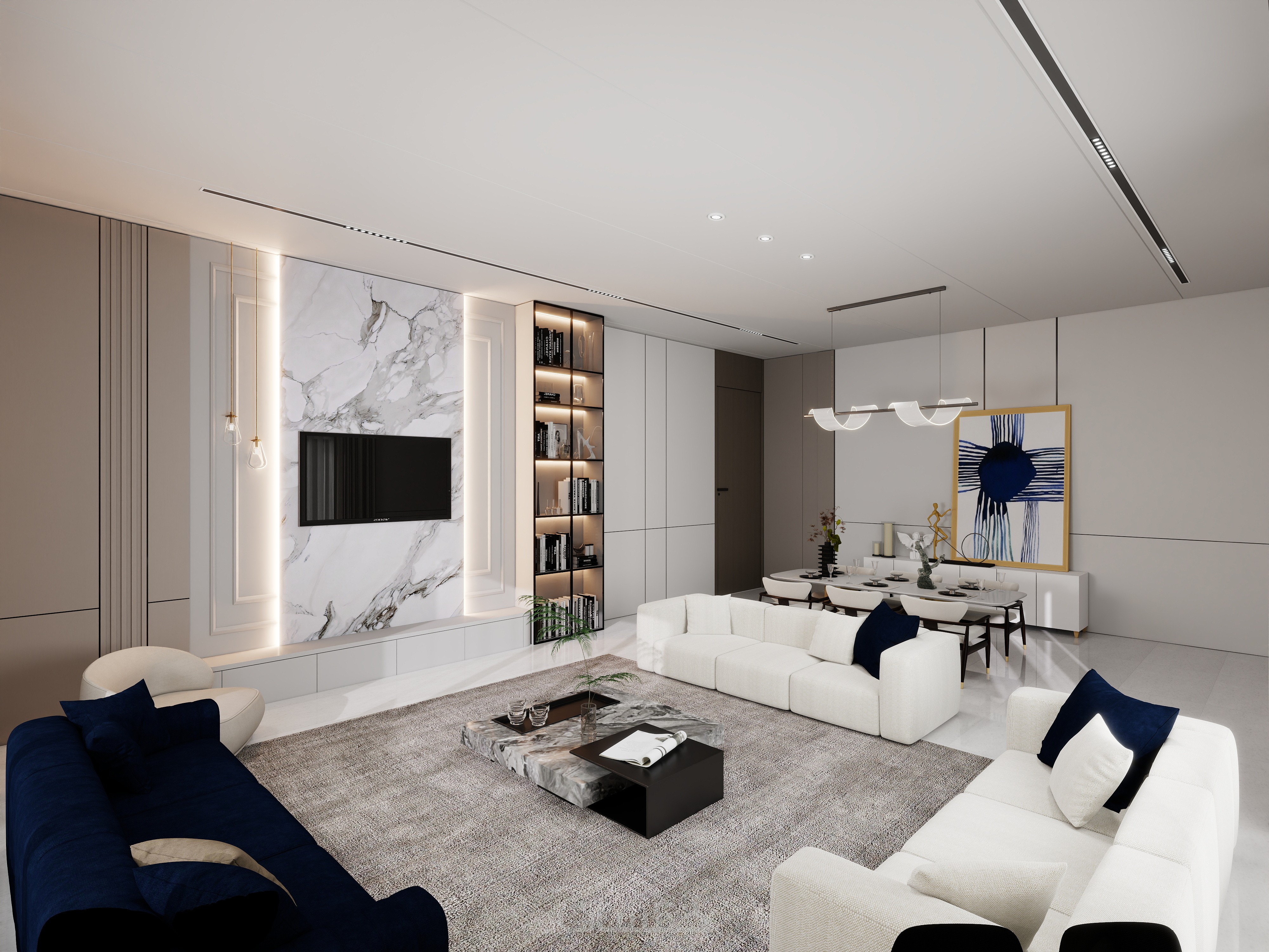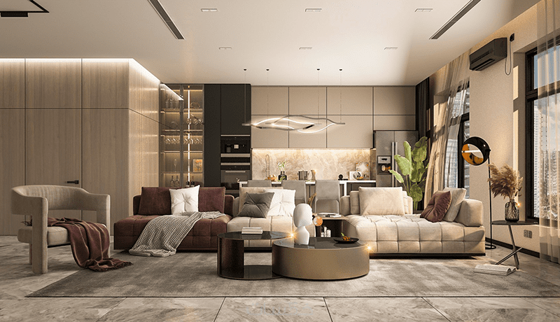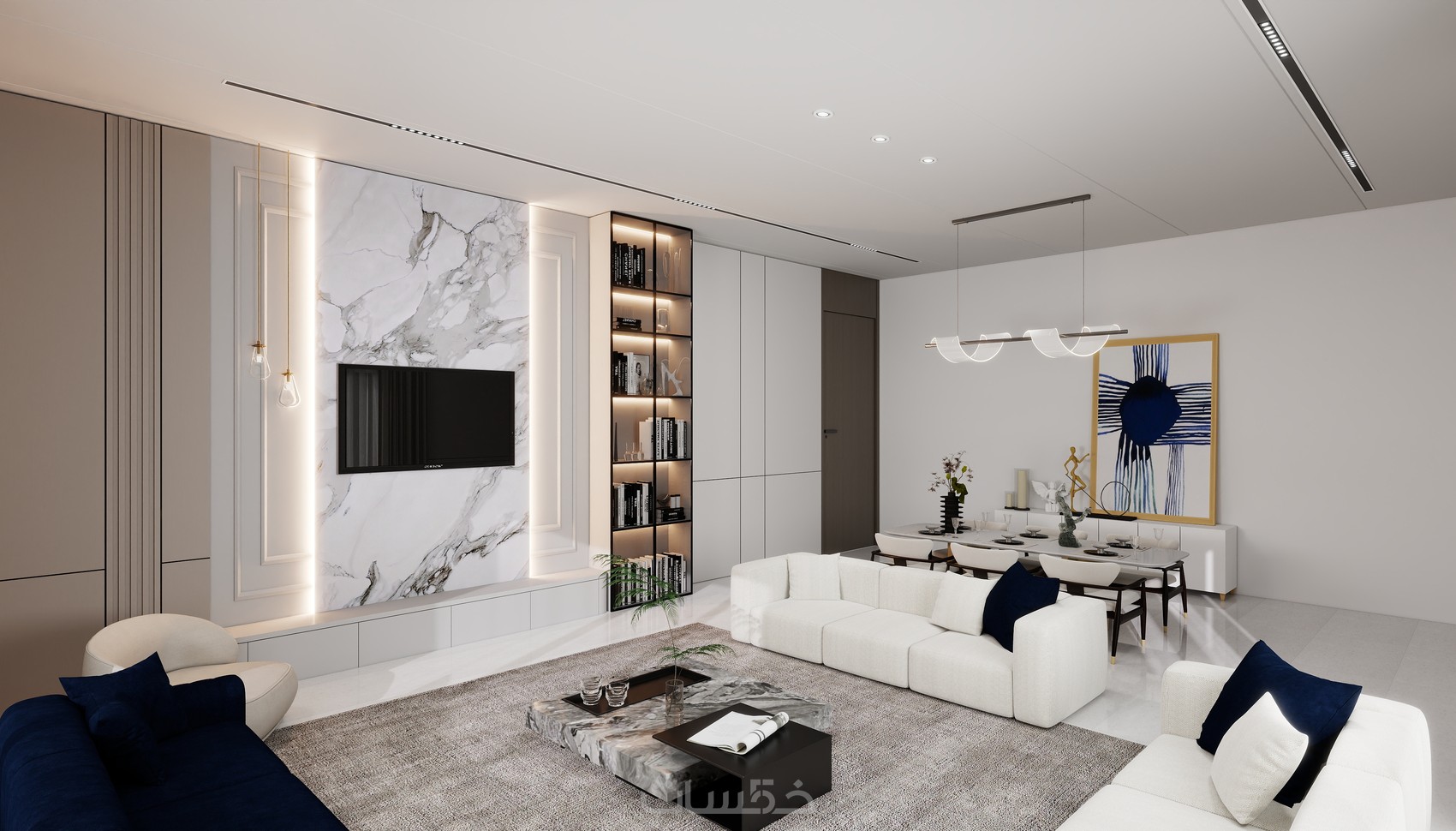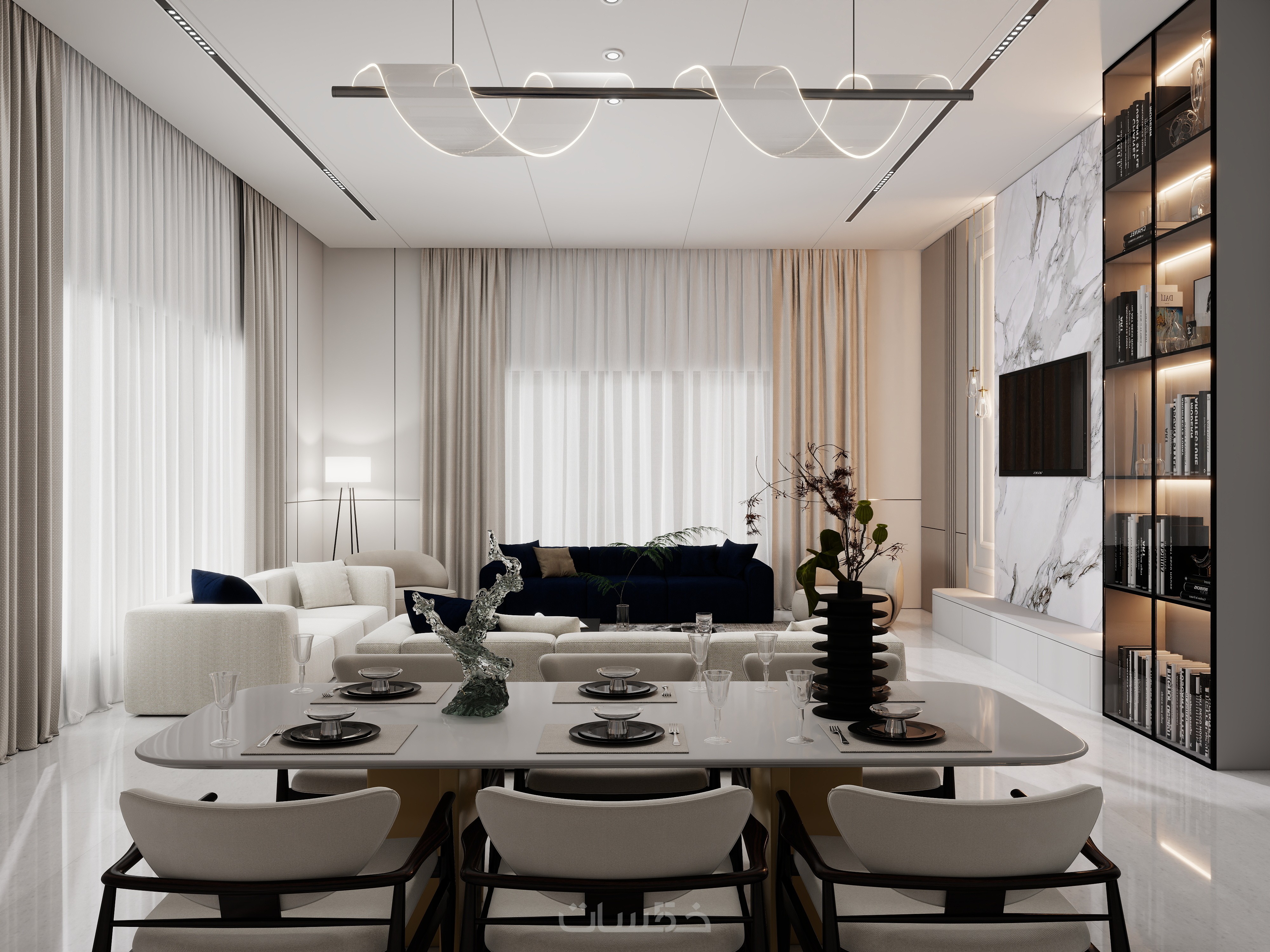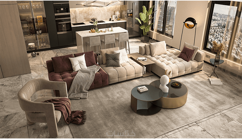 تصميم داخلي عصري لاي فراغ معماري مجالس غرف معيشة وطعام