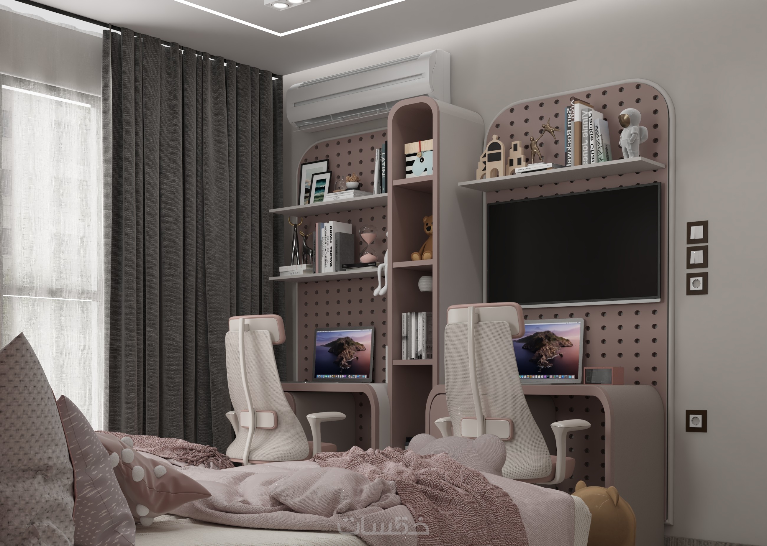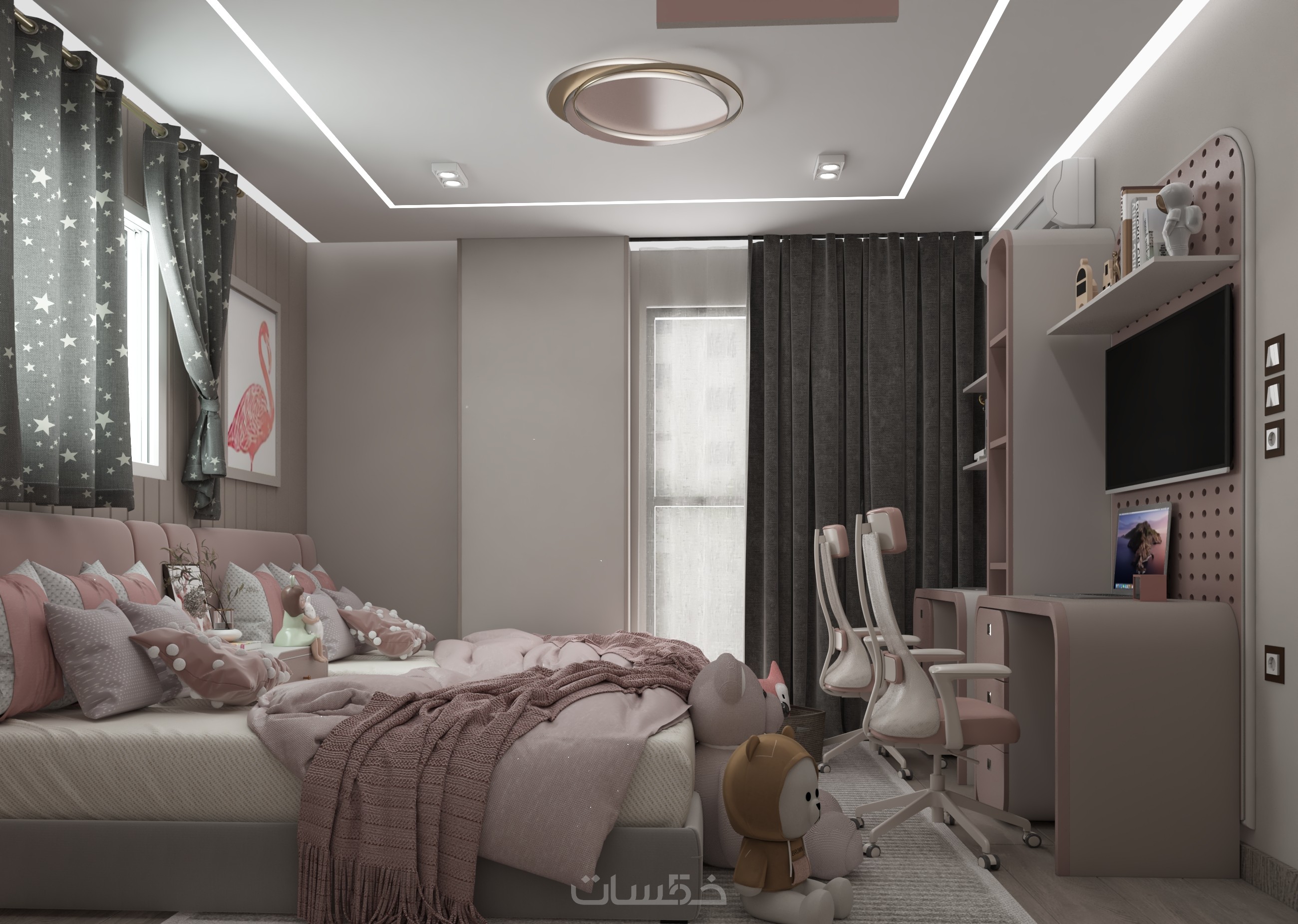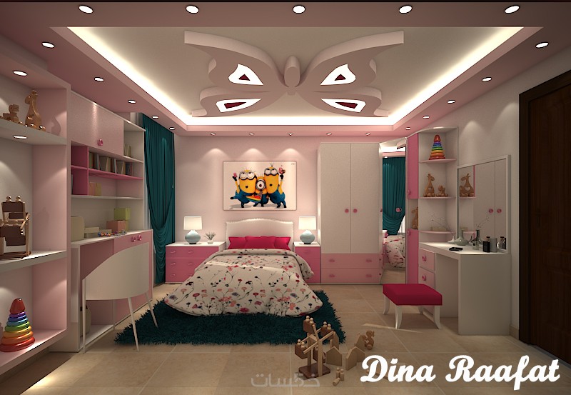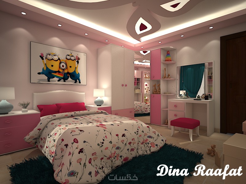 تصميم ديكور غرفة نوم مودرن للبنات بتصور واقعي واحترافي