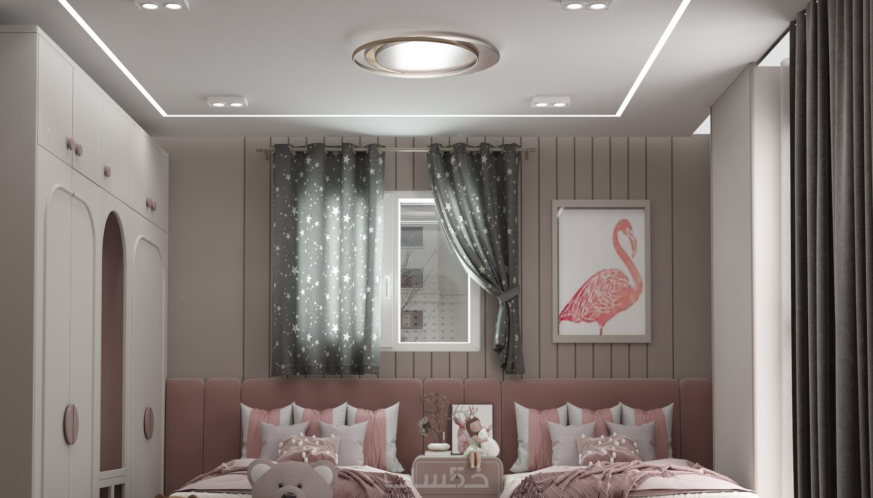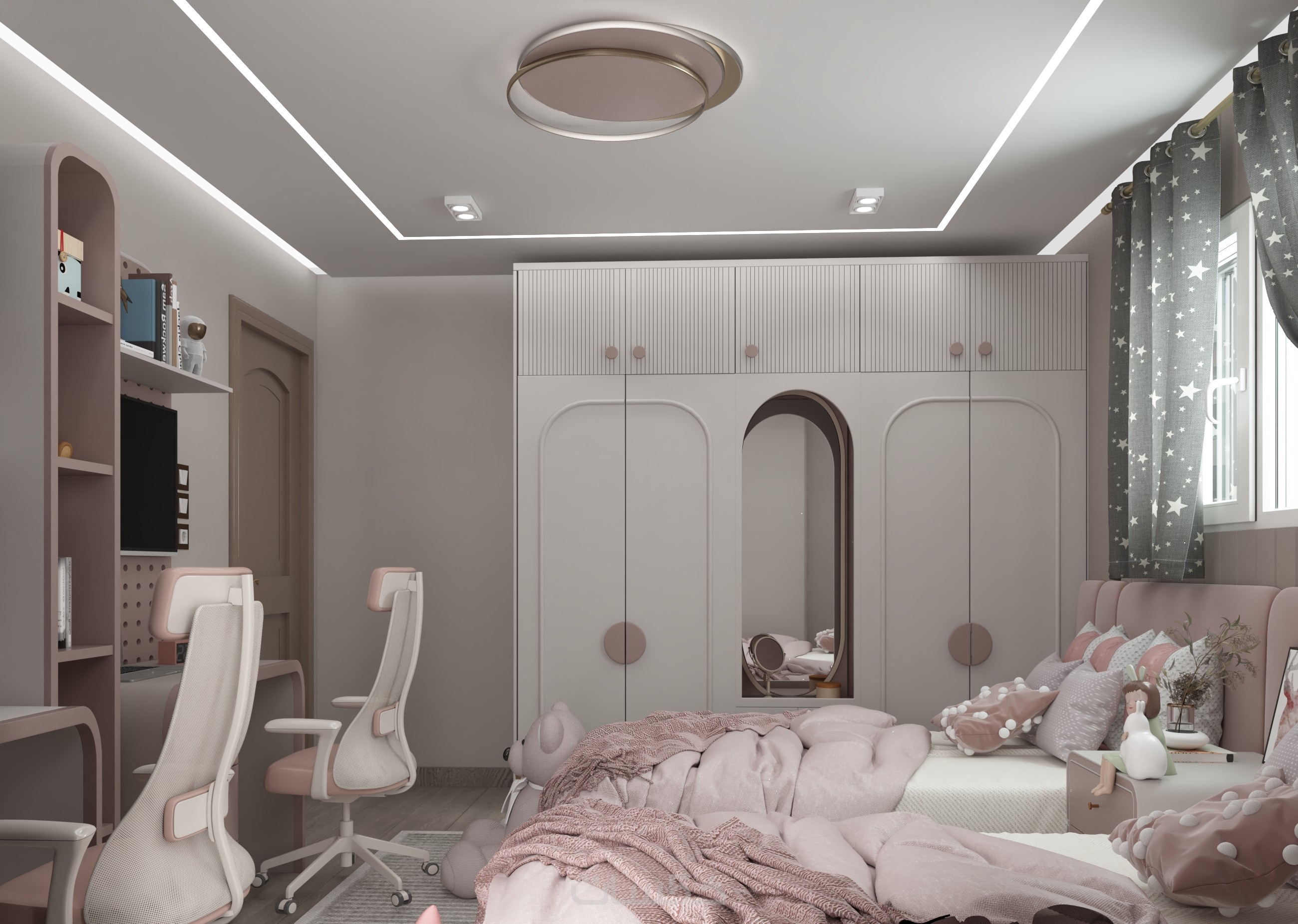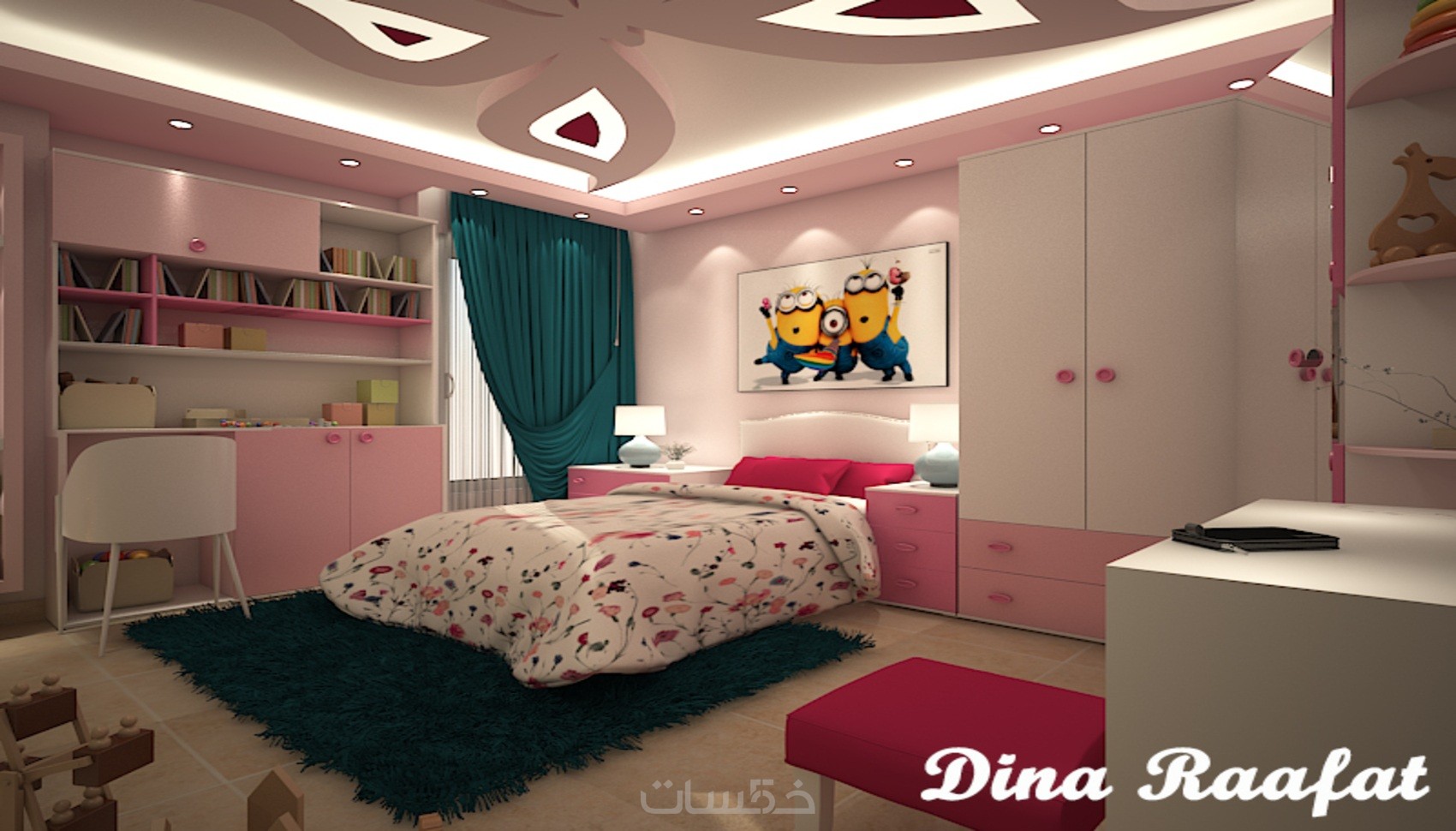 تصميم ديكور غرفة نوم مودرن للبنات بتصور واقعي واحترافي
