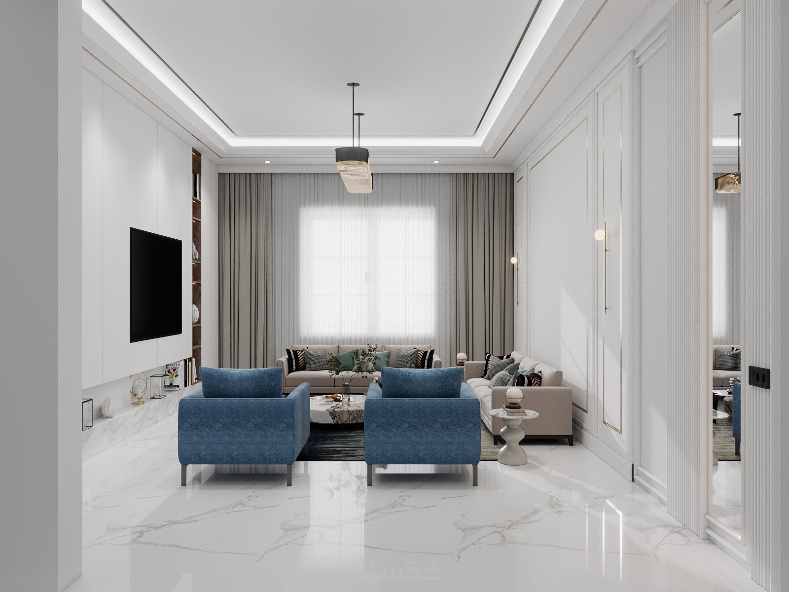 تصميم غرفة معيشة واستقبال