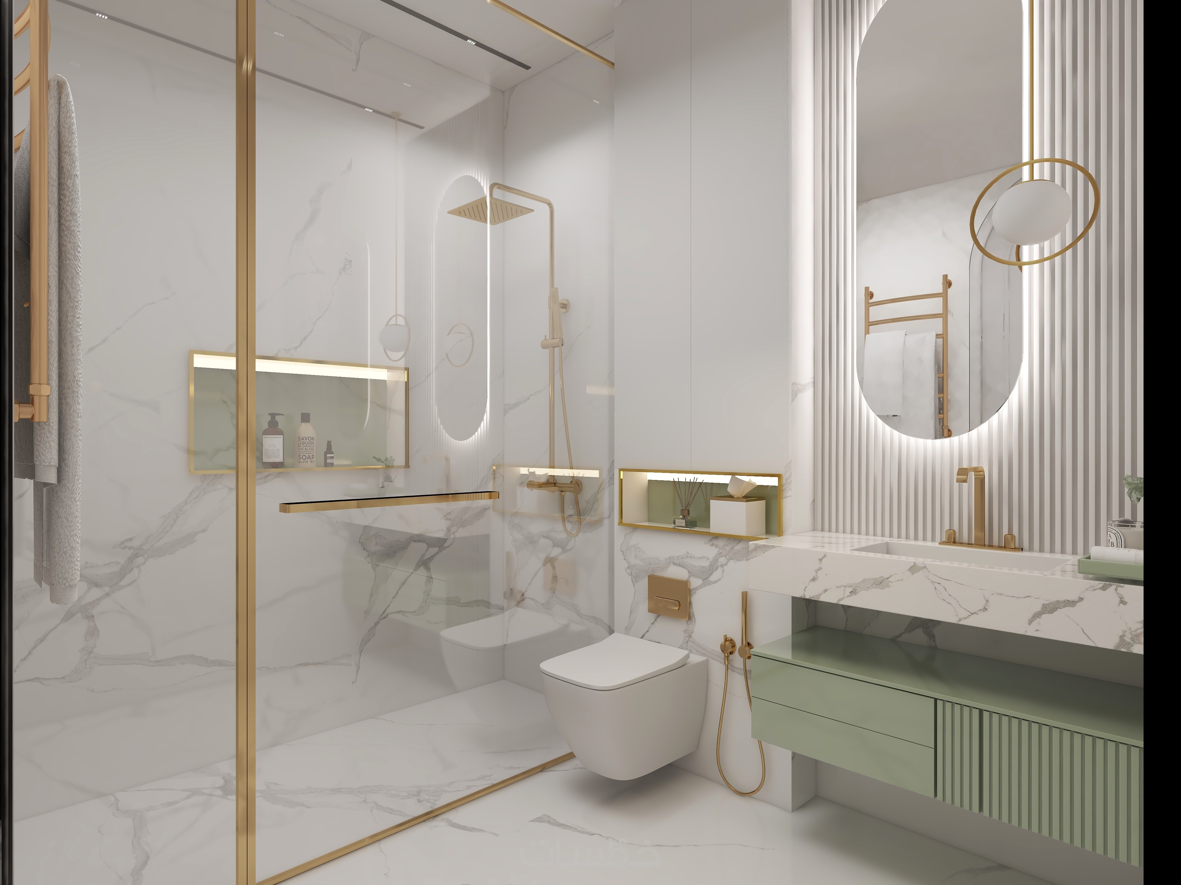 تصميم حمام مودرن و غرفة غسيل