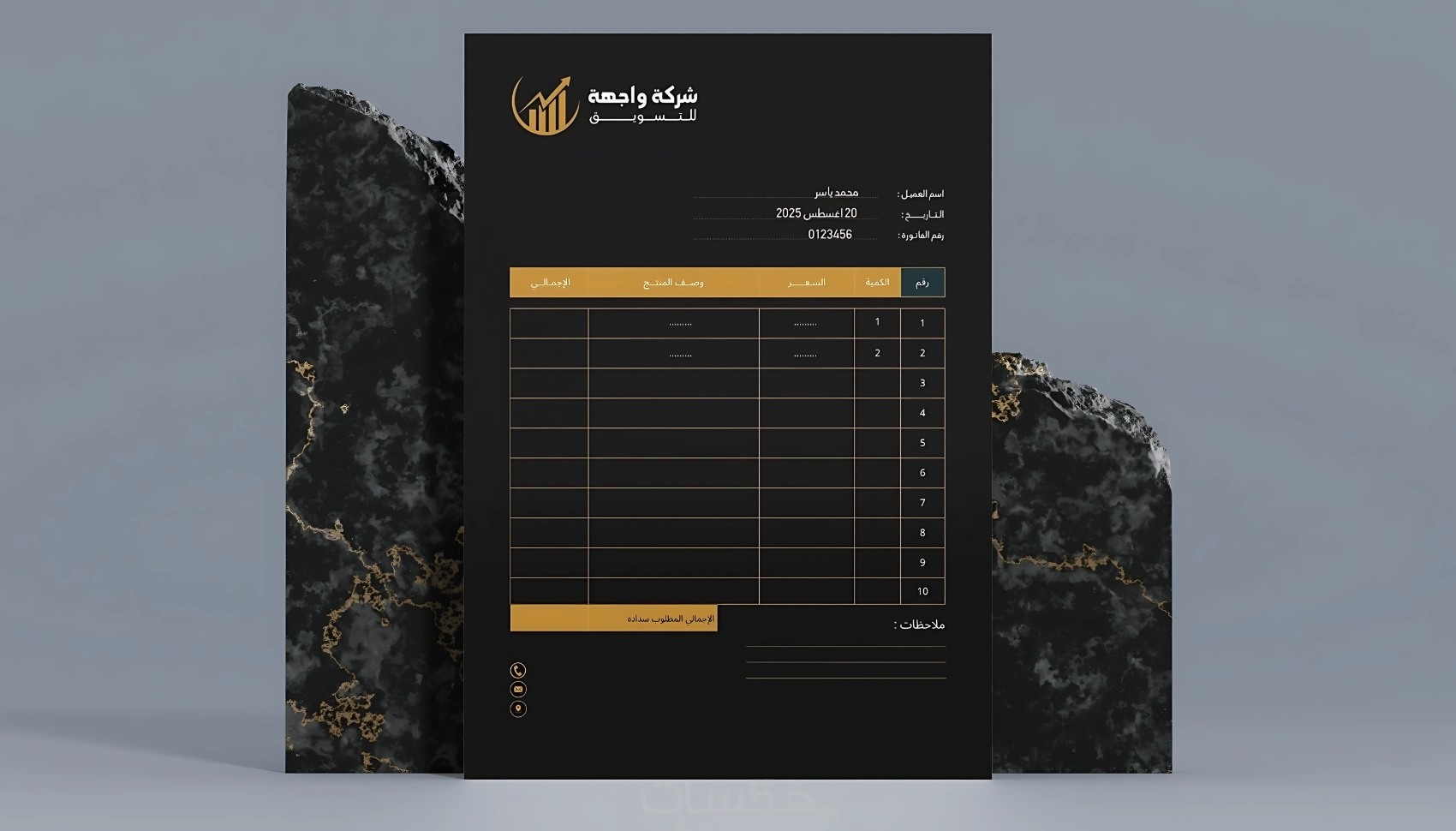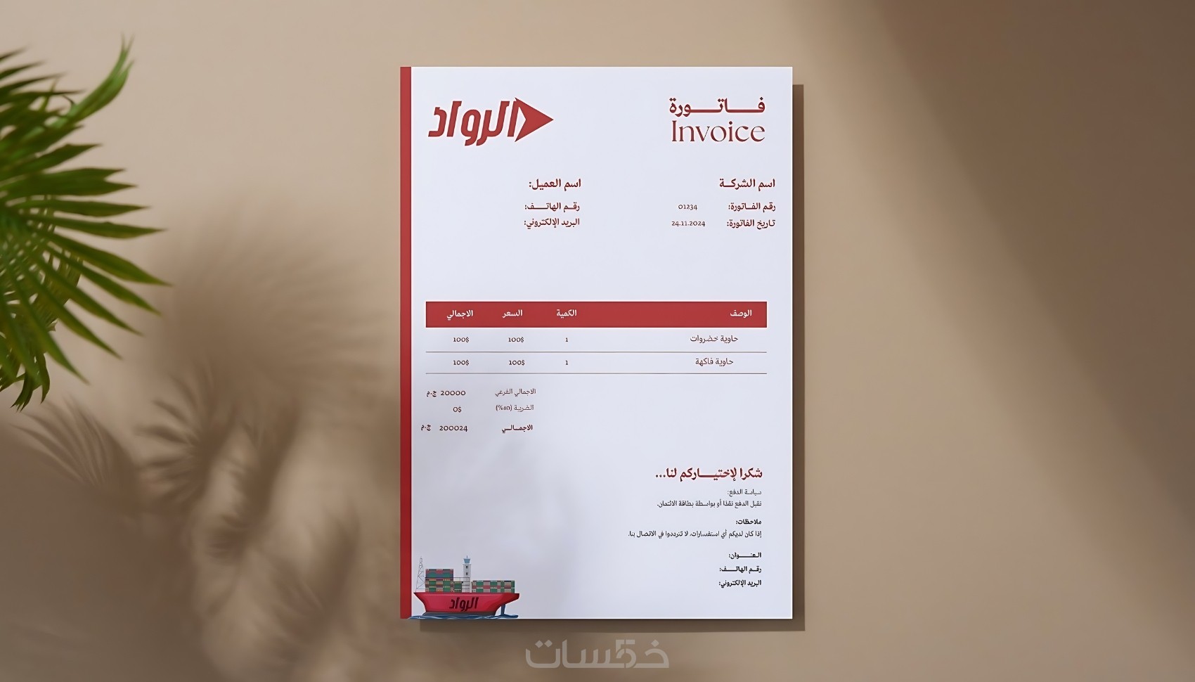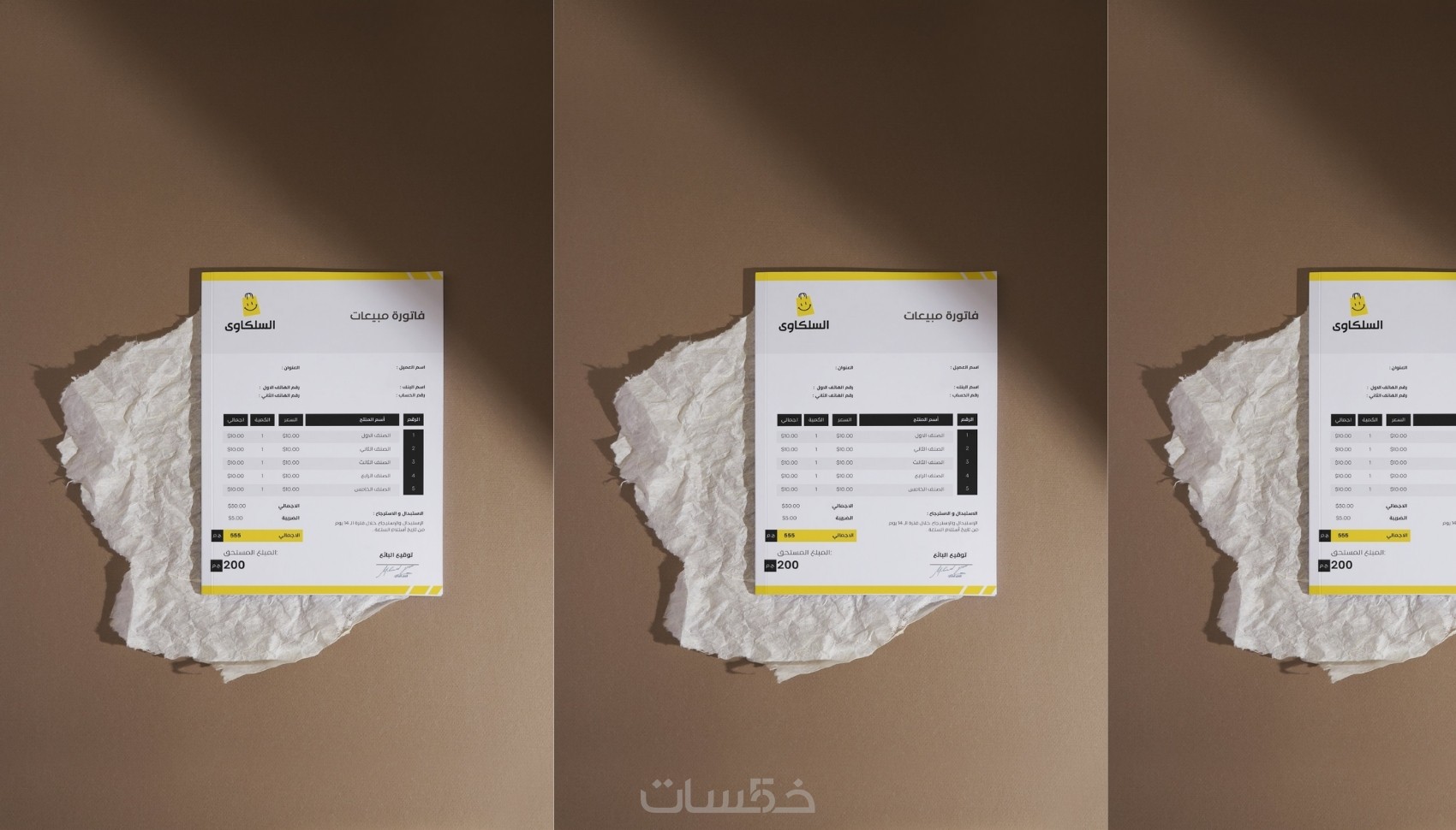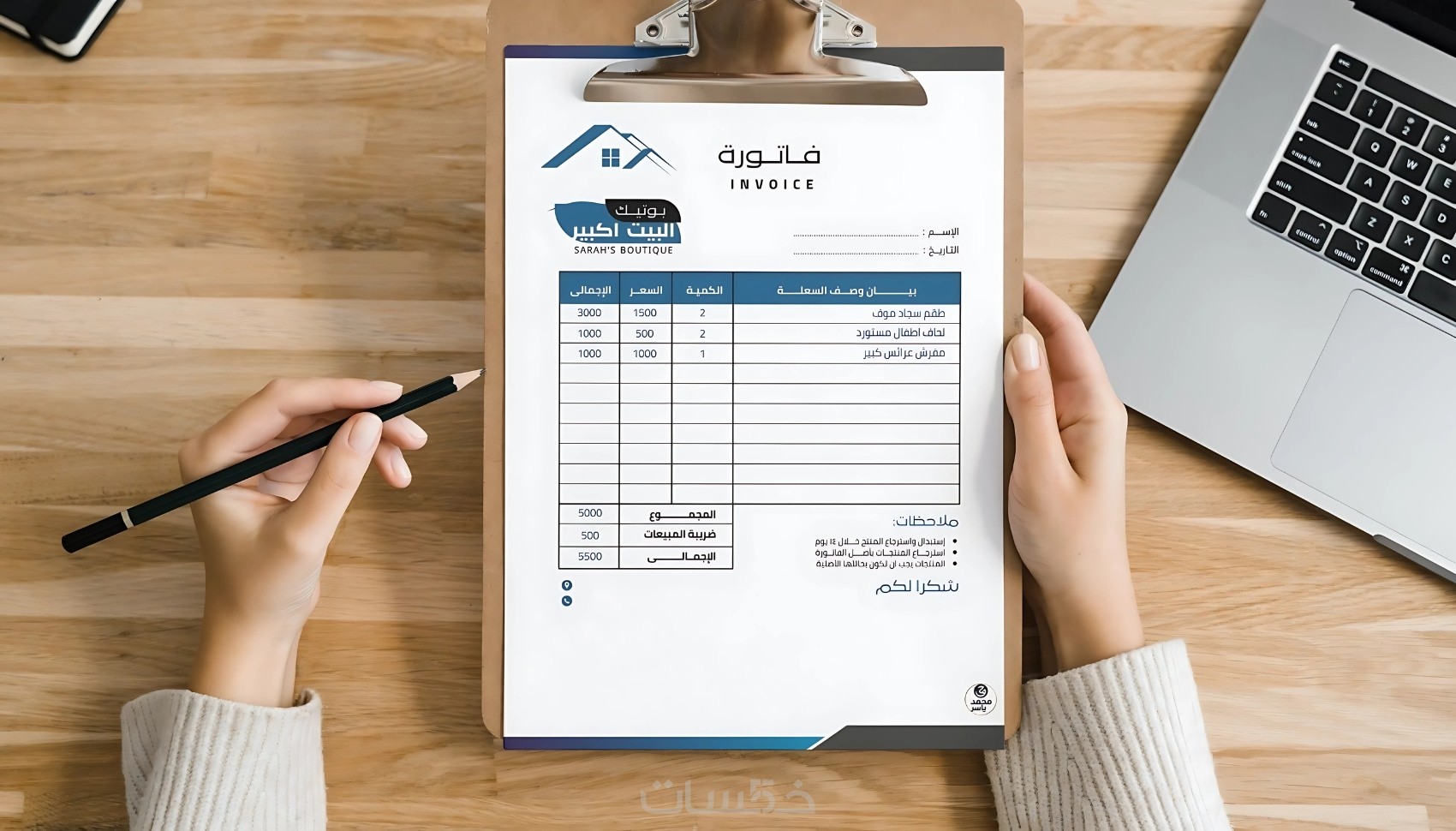 تصميم فاتورة مبيعات بصيغة وورد او أكسل