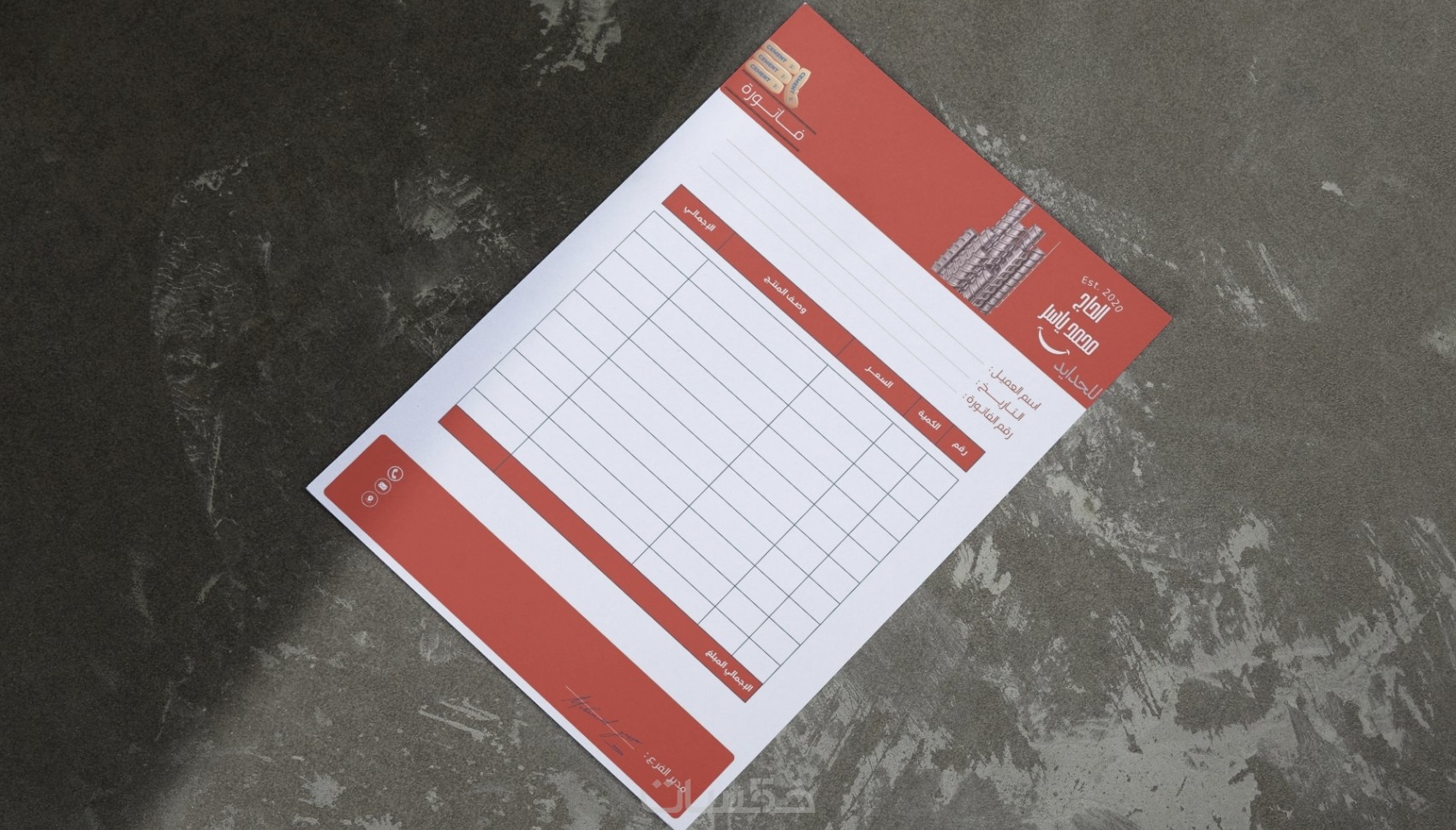 تصميم بطاقة عمل و ورق رسمي و فاتورة