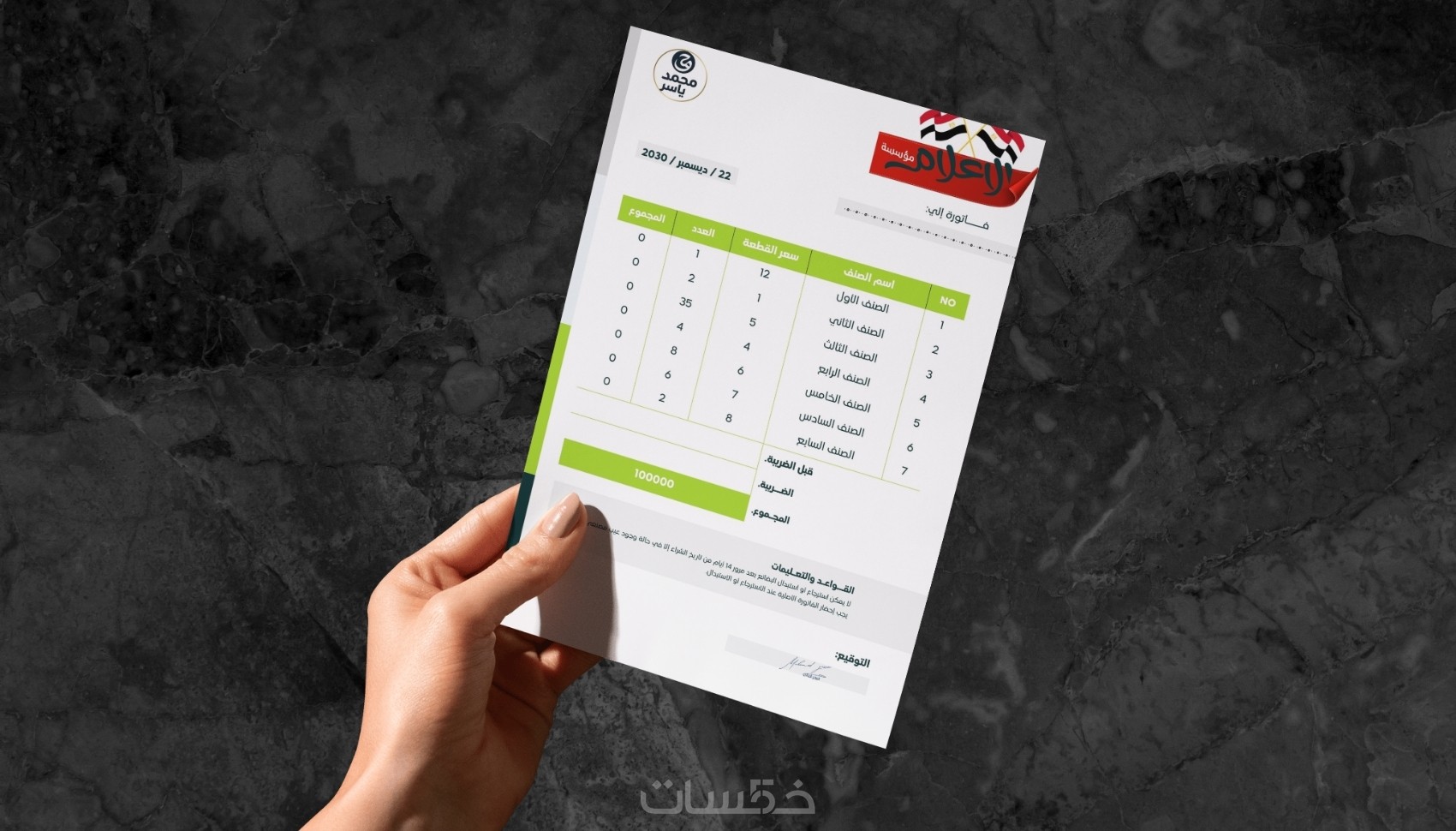 تصميم ورق رسمي لعملك الخاص وسند قبض أو فاتورة