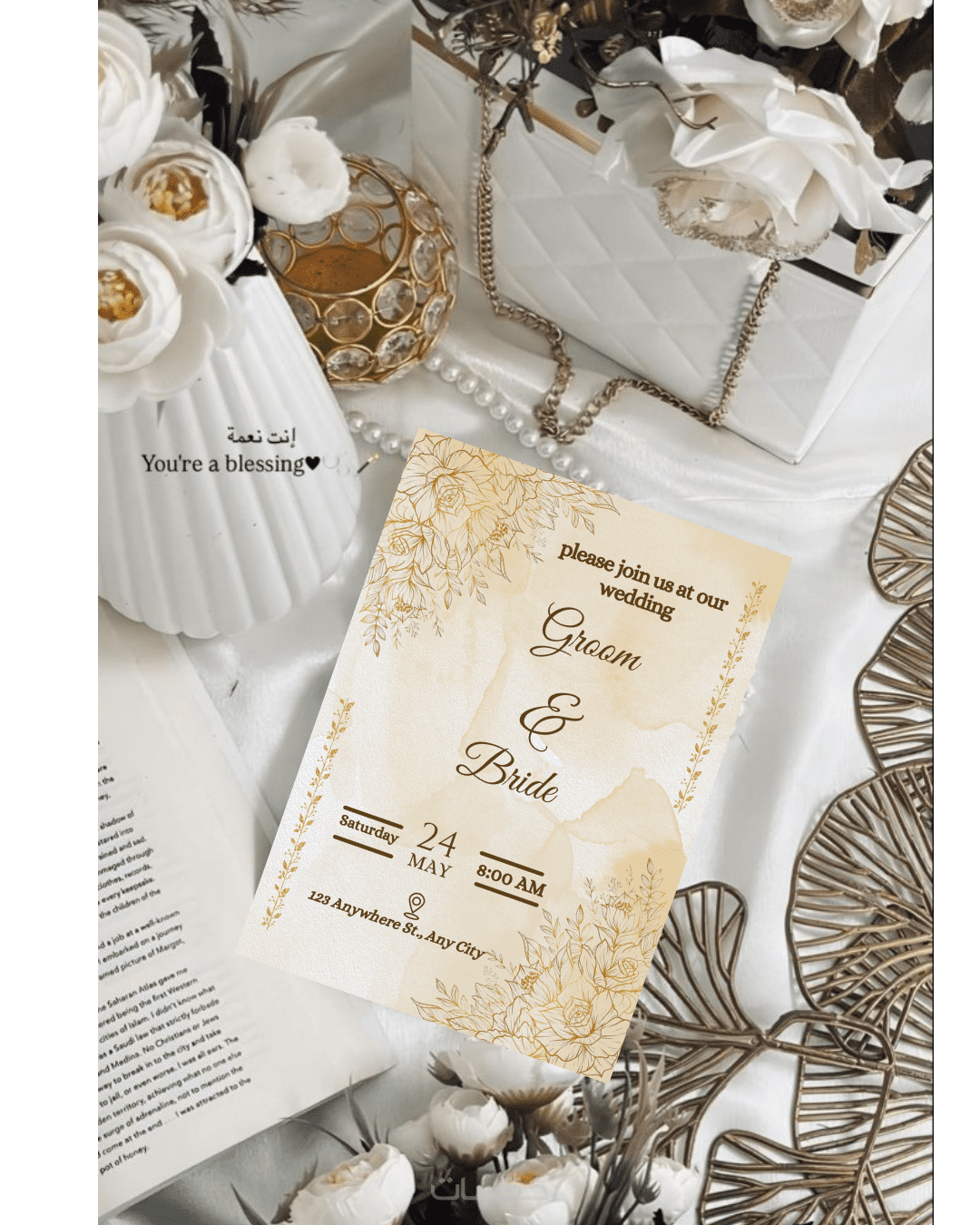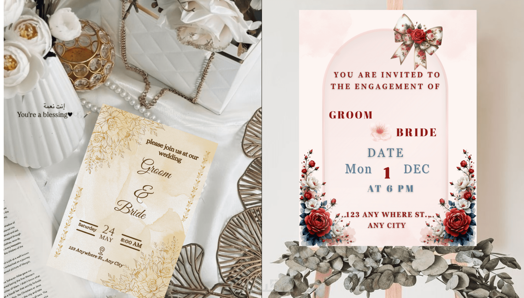 اجعل أول خطوة في فرحك تبهر الكل،تصميم دعوة زفاف تخطف الأنظار