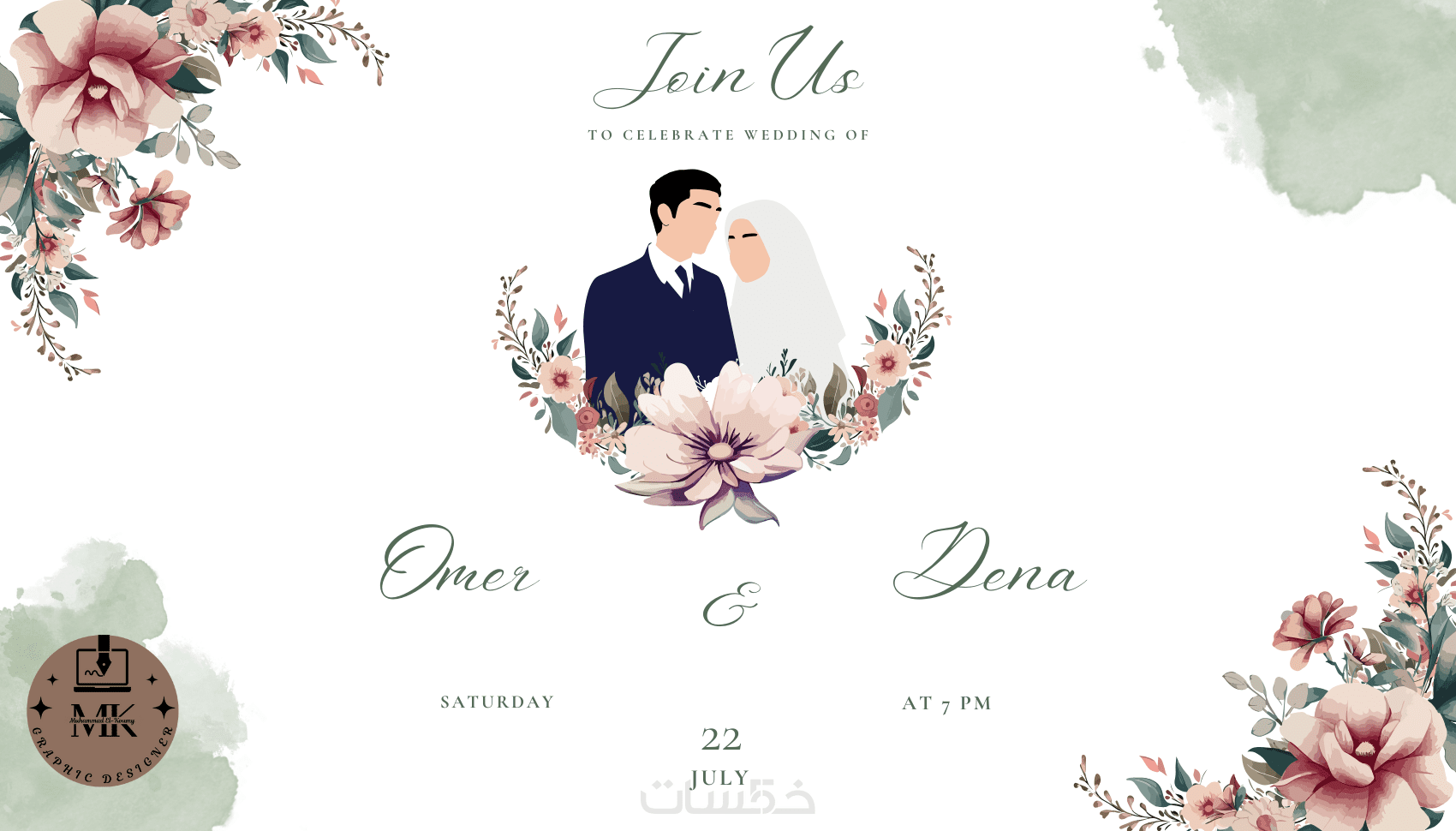 تصميم دعوة زفاف وبطاقات تهنئة باحترافية ودقة عالية