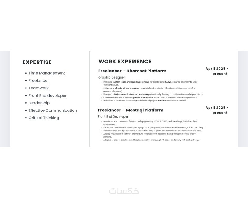 تصميم بورتفوليو فريلانسر احترافي PDF