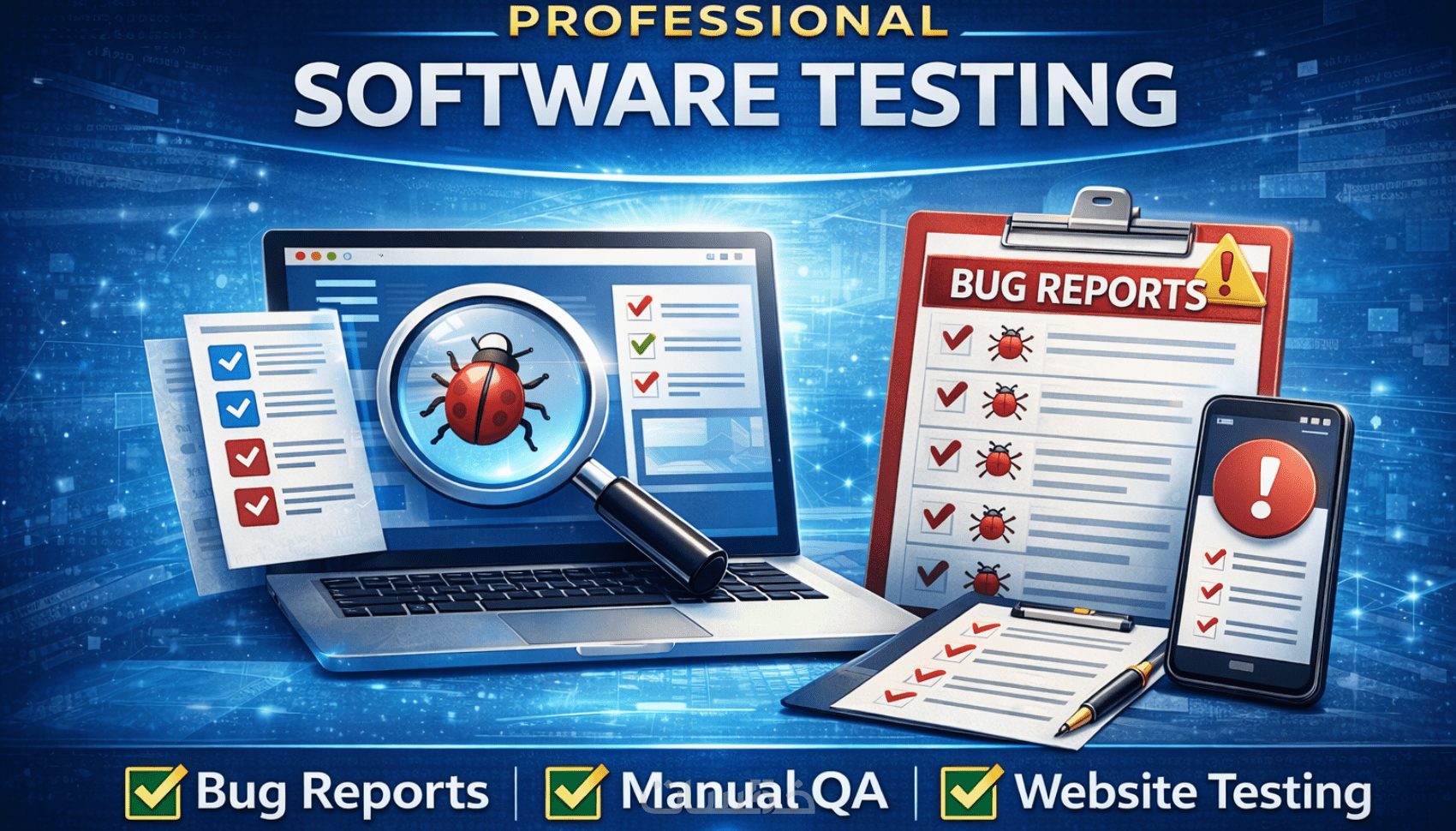سأختبر موقعك أو تطبيقك يدوياً وأكشف الأخطاء مع تقرير مفصل