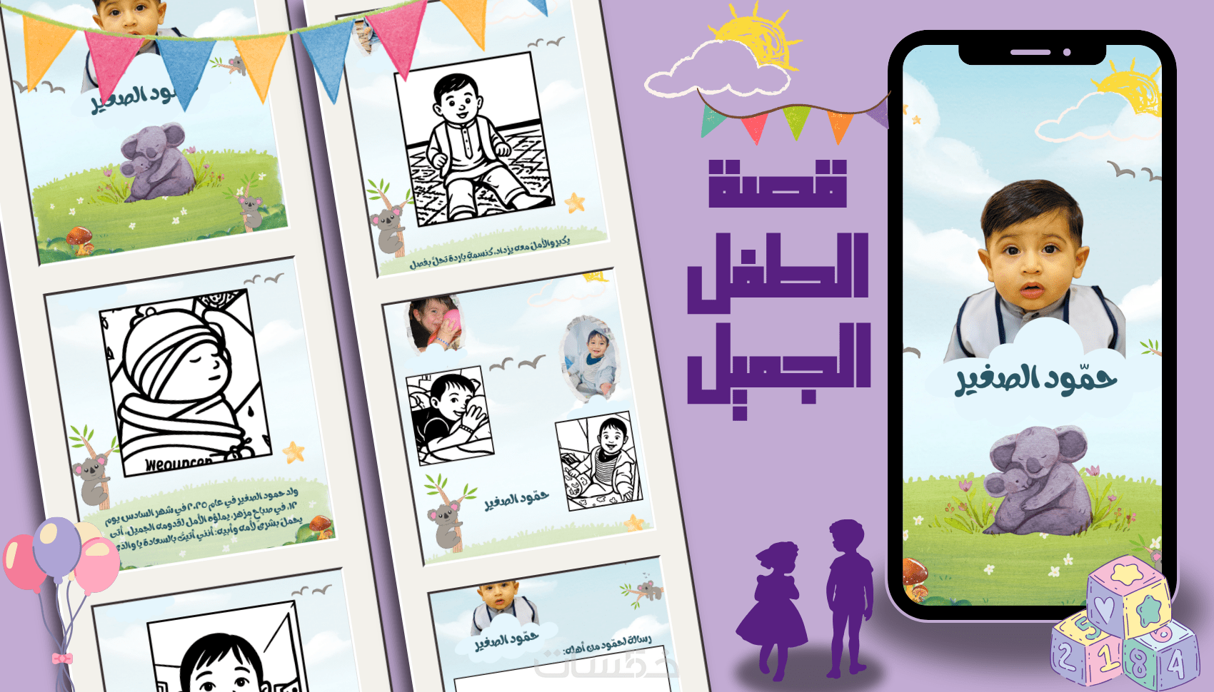 قصة تلوين مخصصة لولادة طفلك ٦ صفحات صياغة أدبية