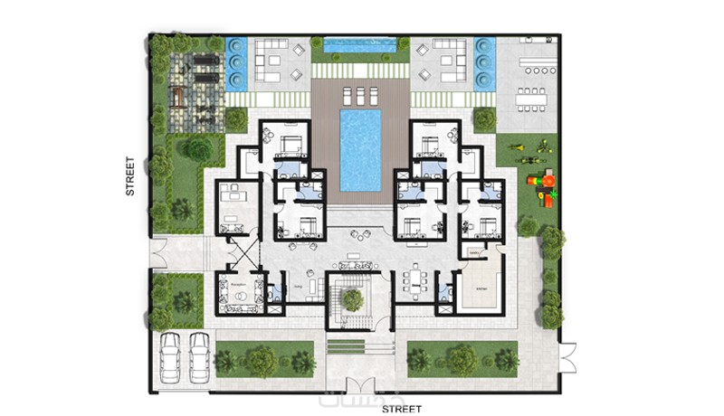 تصميم واجهات و ديكور خارجي ولاند اسكيب لكل 3 متر مربع