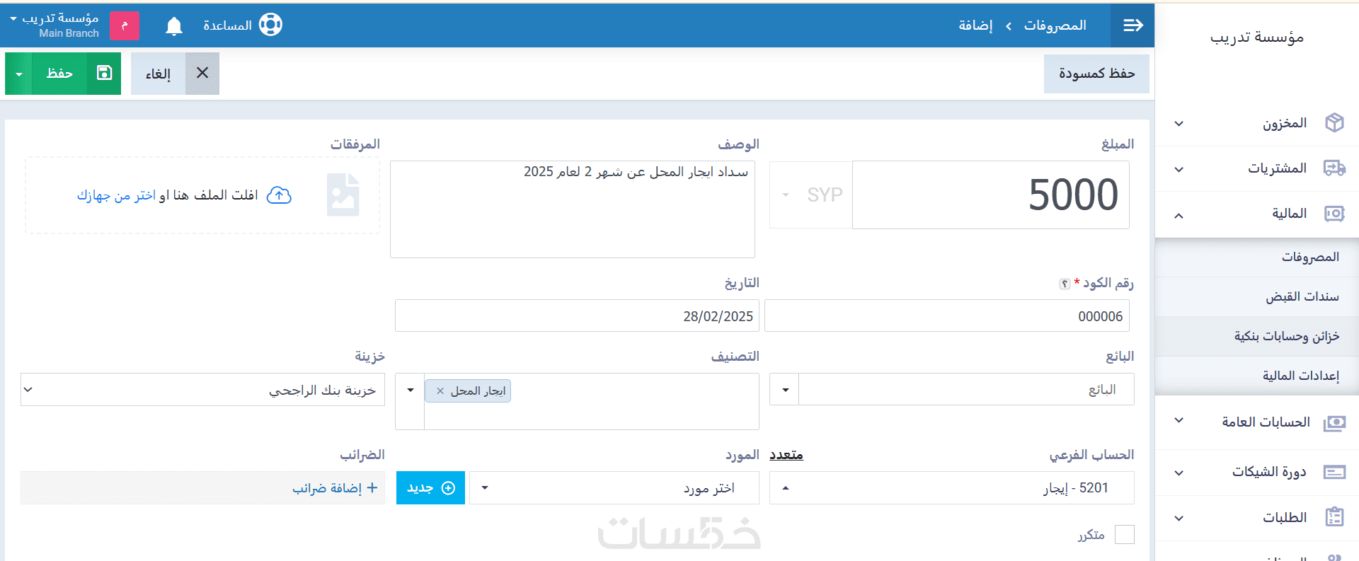 ادخال البيانات المالية (قيود محاسبية وفواتير و غيرها)