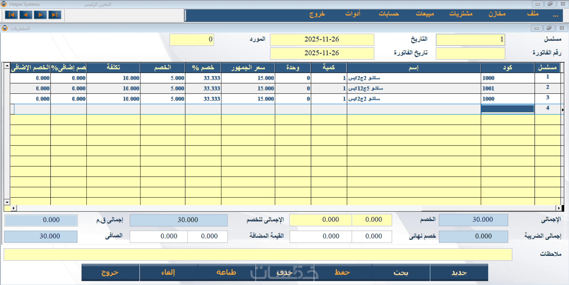 تسجيل وادخال فواتير المشتريات علي البرامج المحاسبية