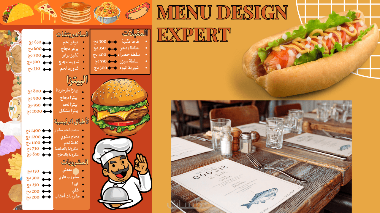 تصميم منيو مطاعم عصرية واحترافية للطباعة والسوشيال ميديا