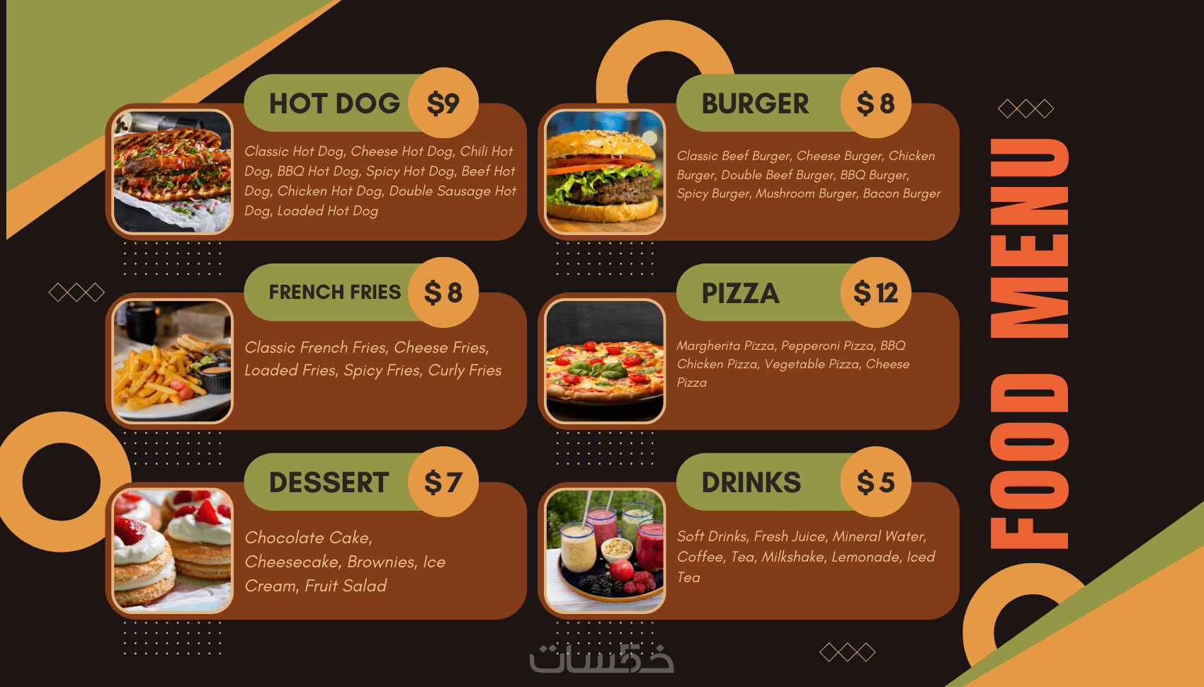 تصميم منيو فاست فود / كافيتيريا / مطعم / كراب menu design