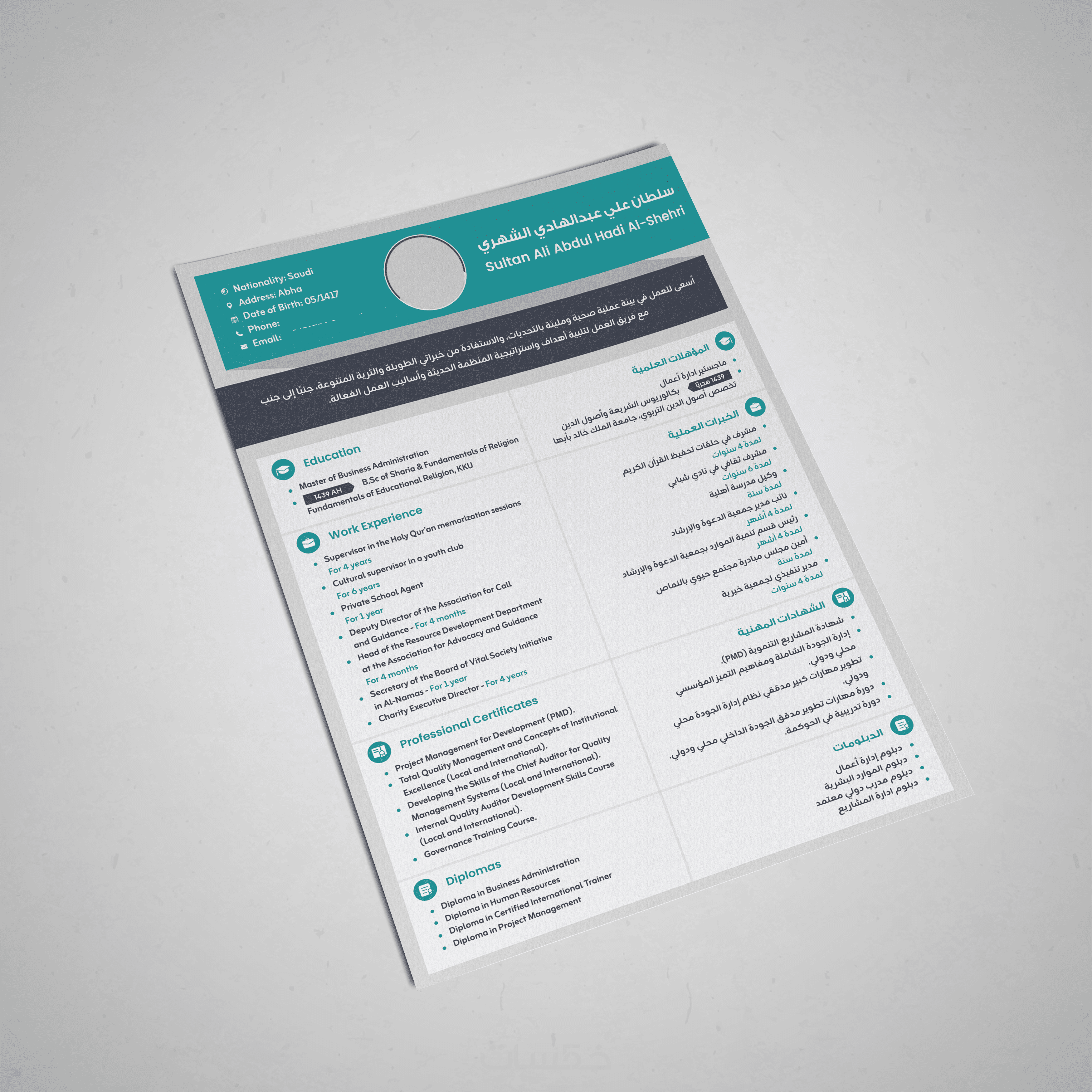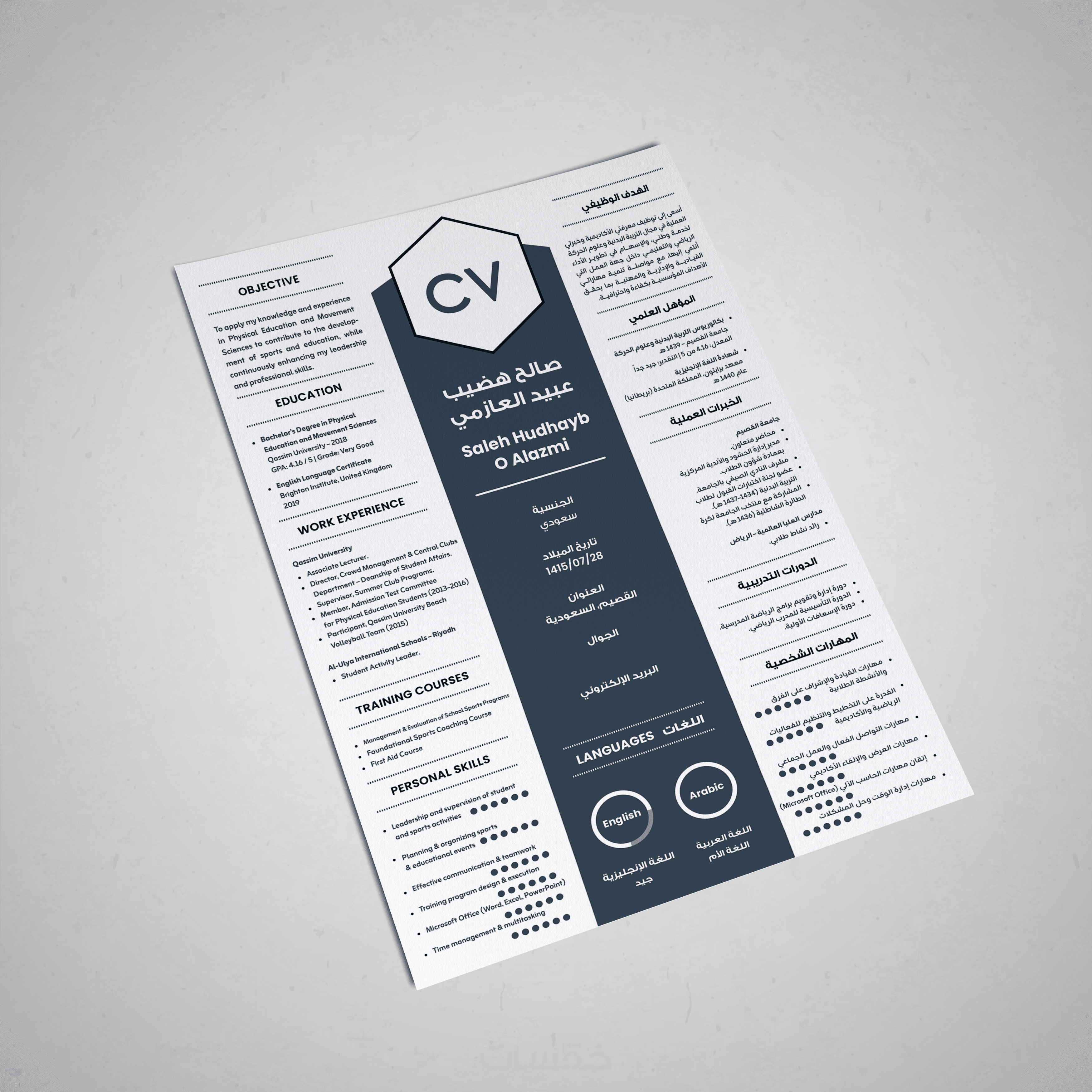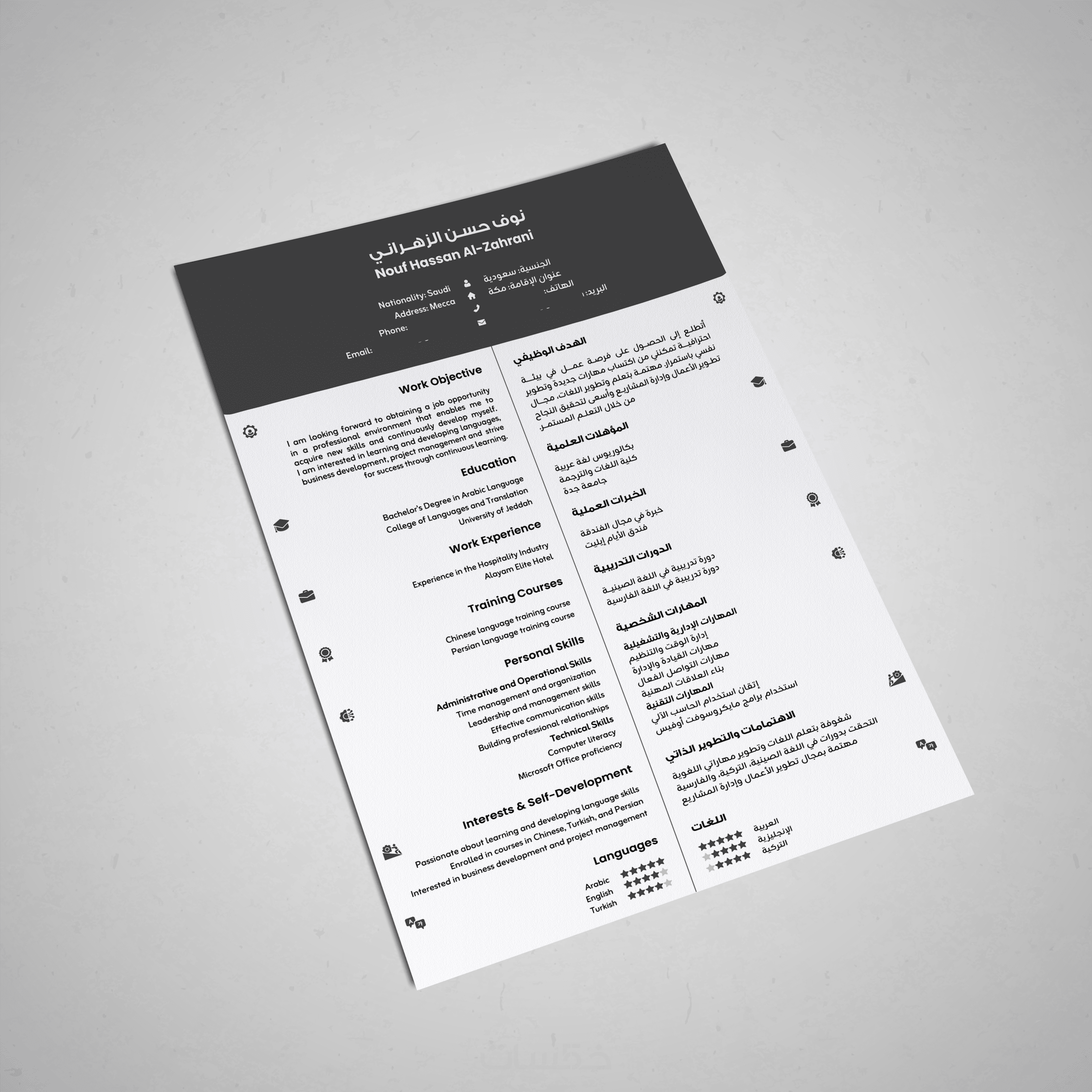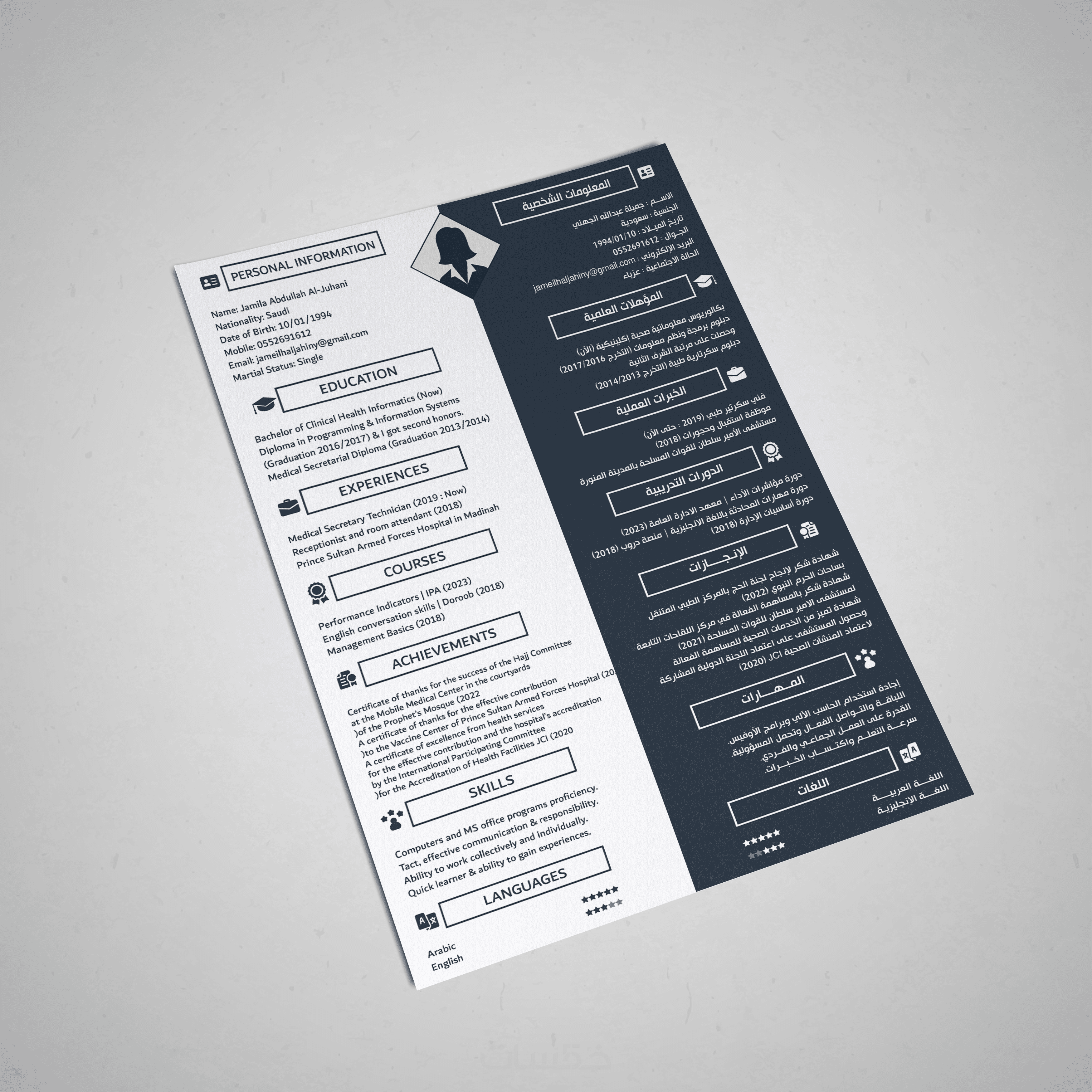 تصميم سيرة ذاتية احترافية لغتين معًا بصفحة واحدة