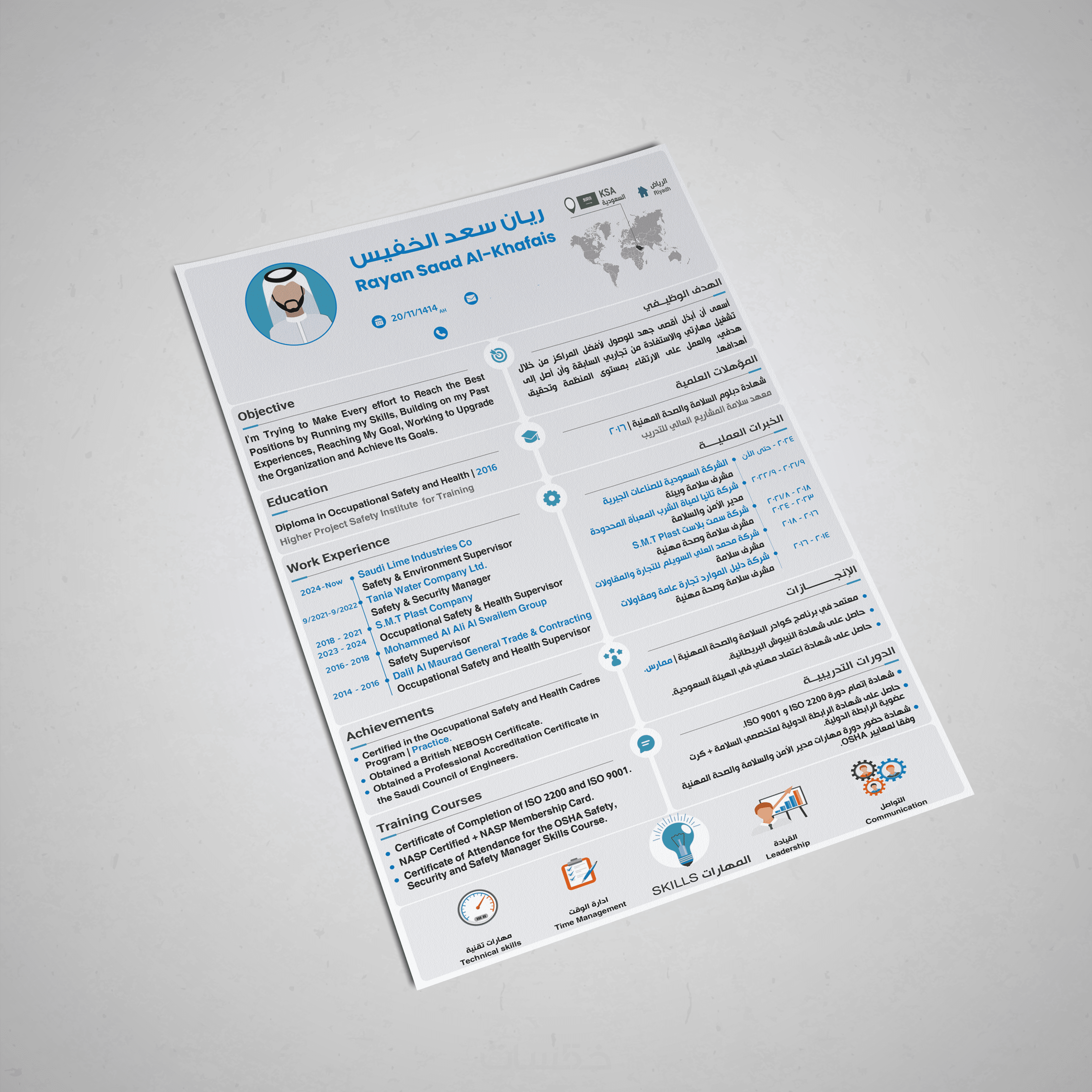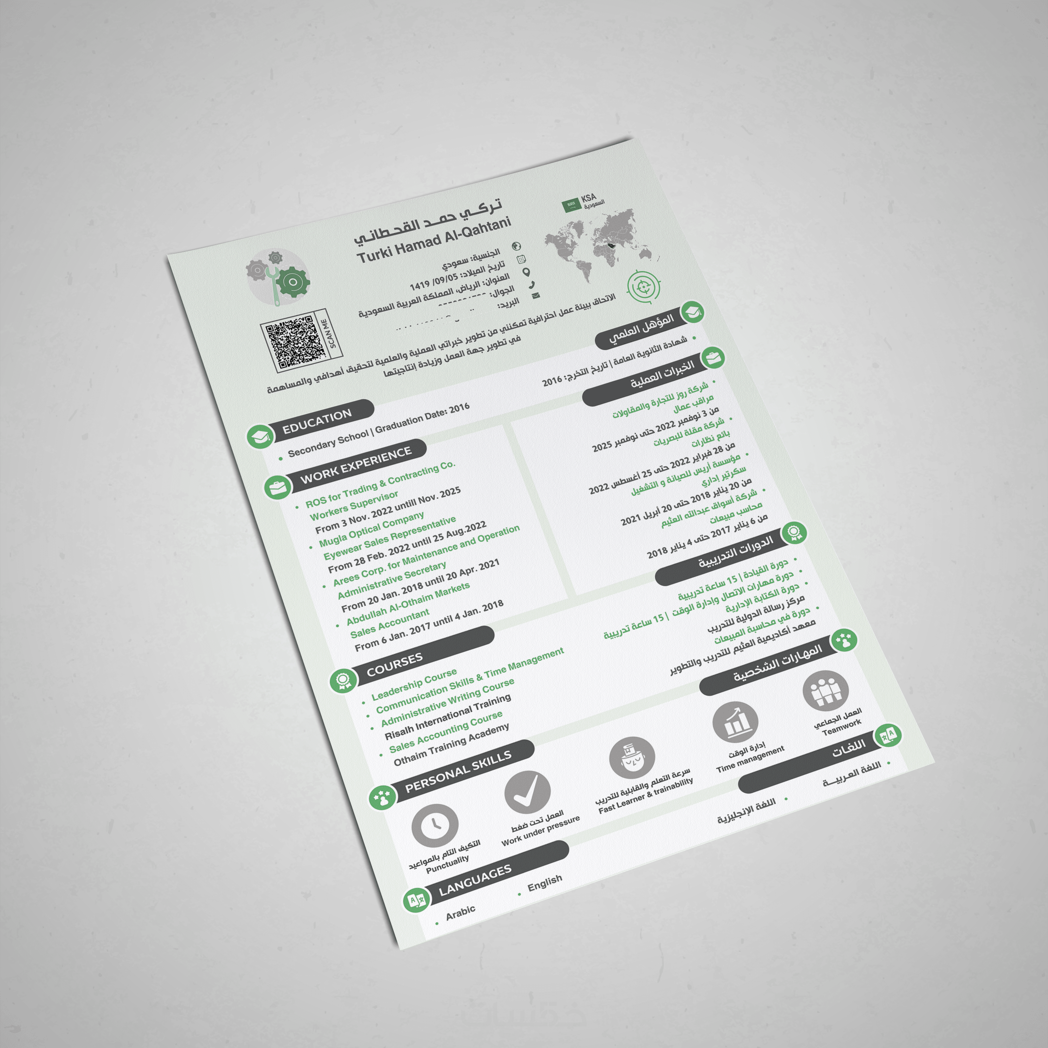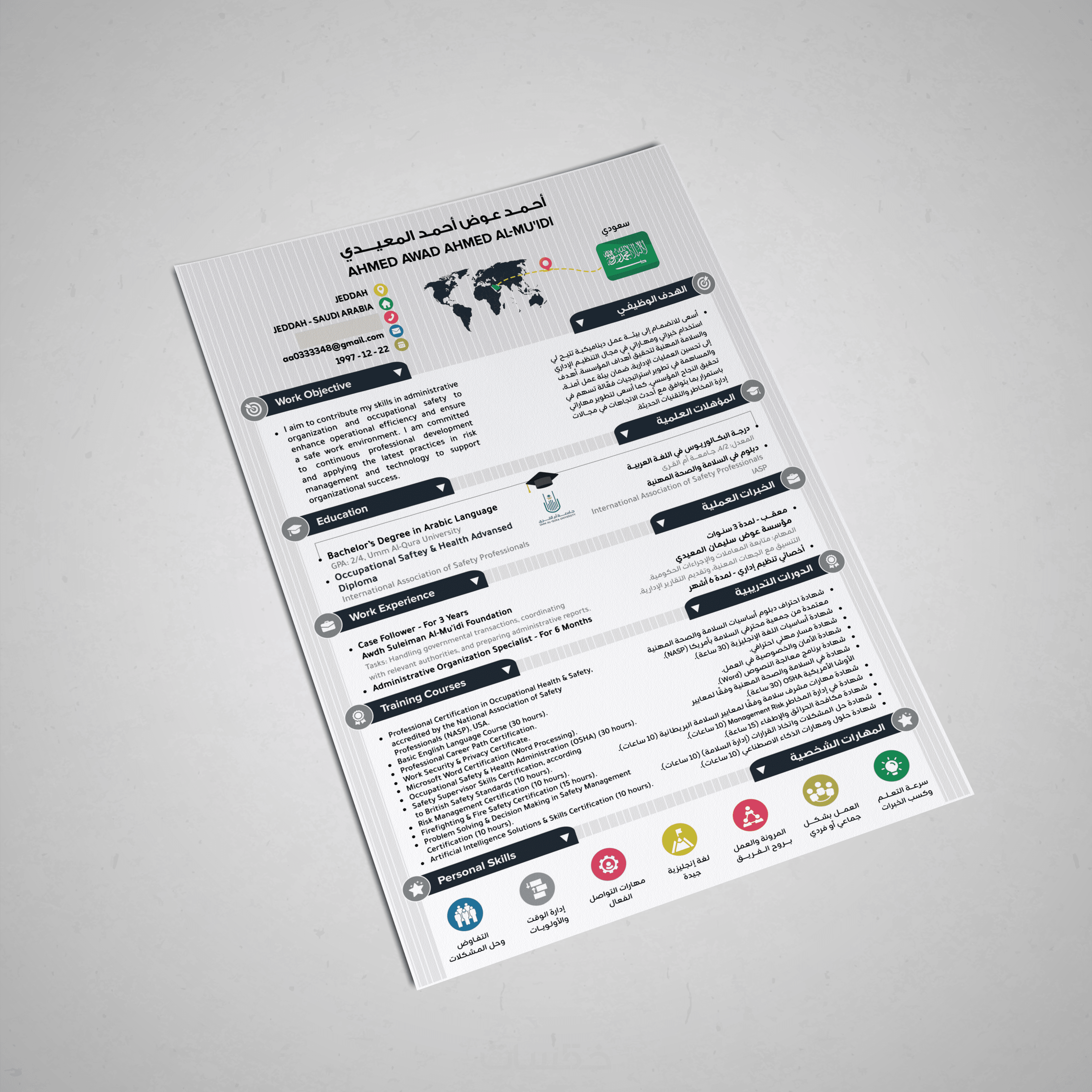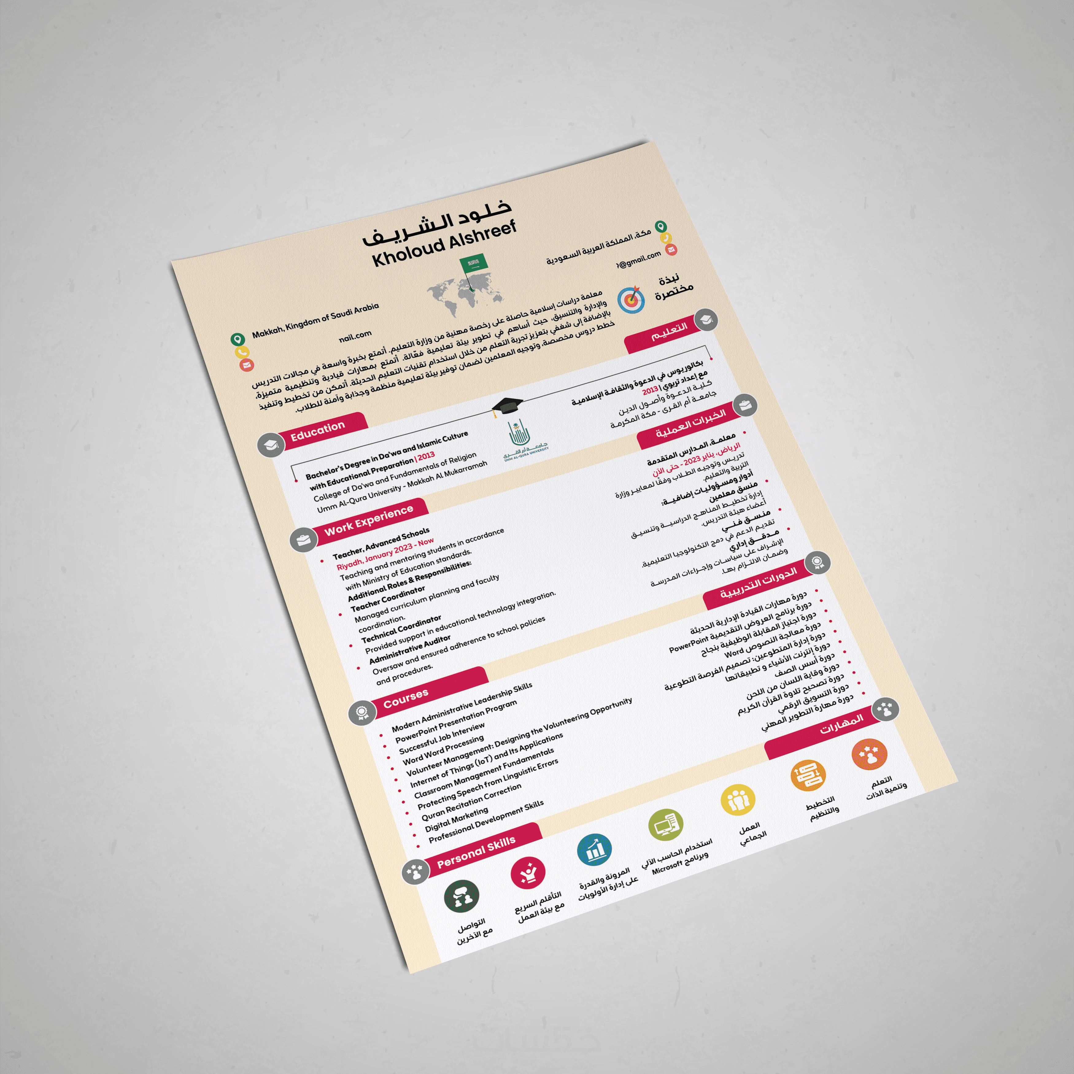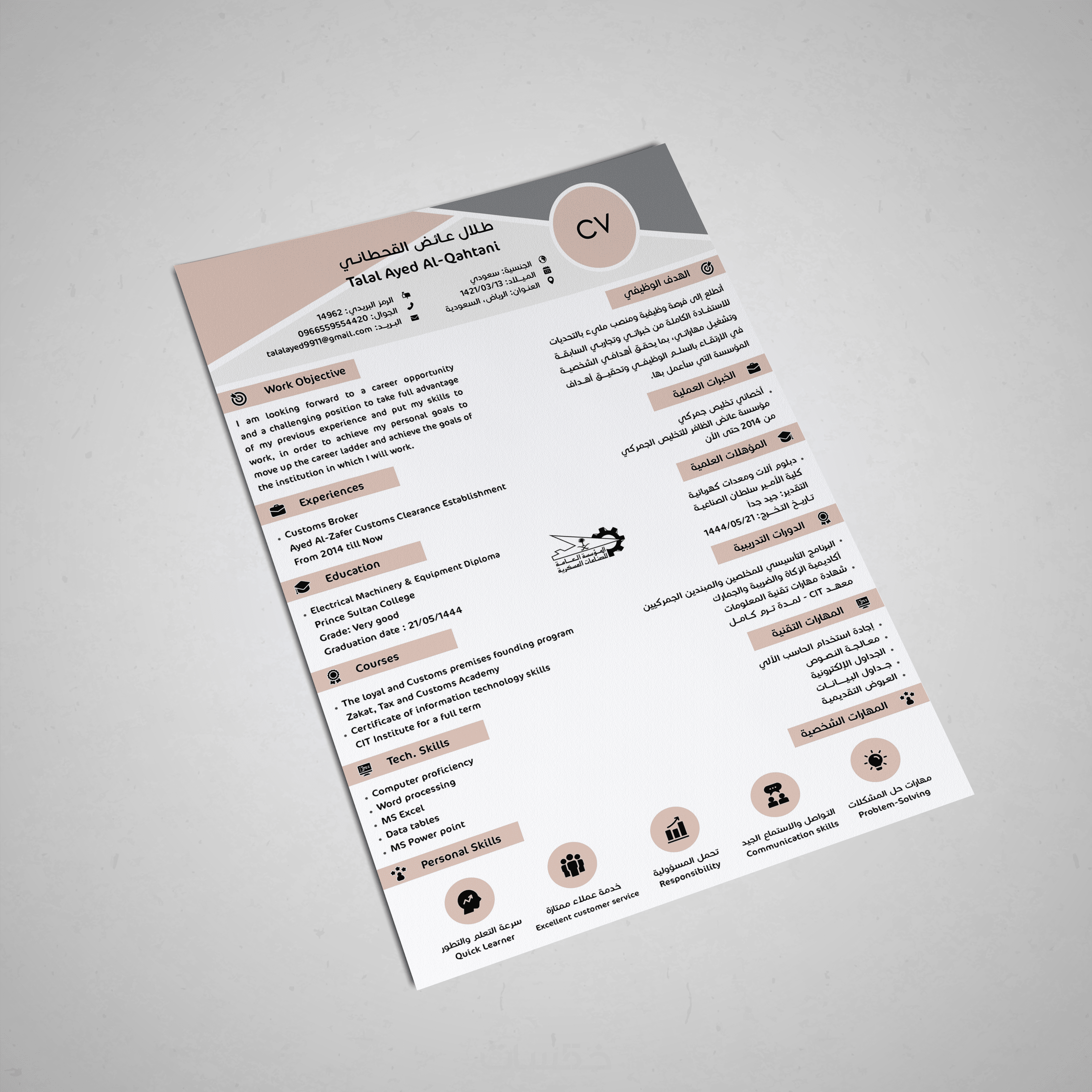 تصميم سيرة ذاتية احترافية لغتين معًا بصفحة واحدة