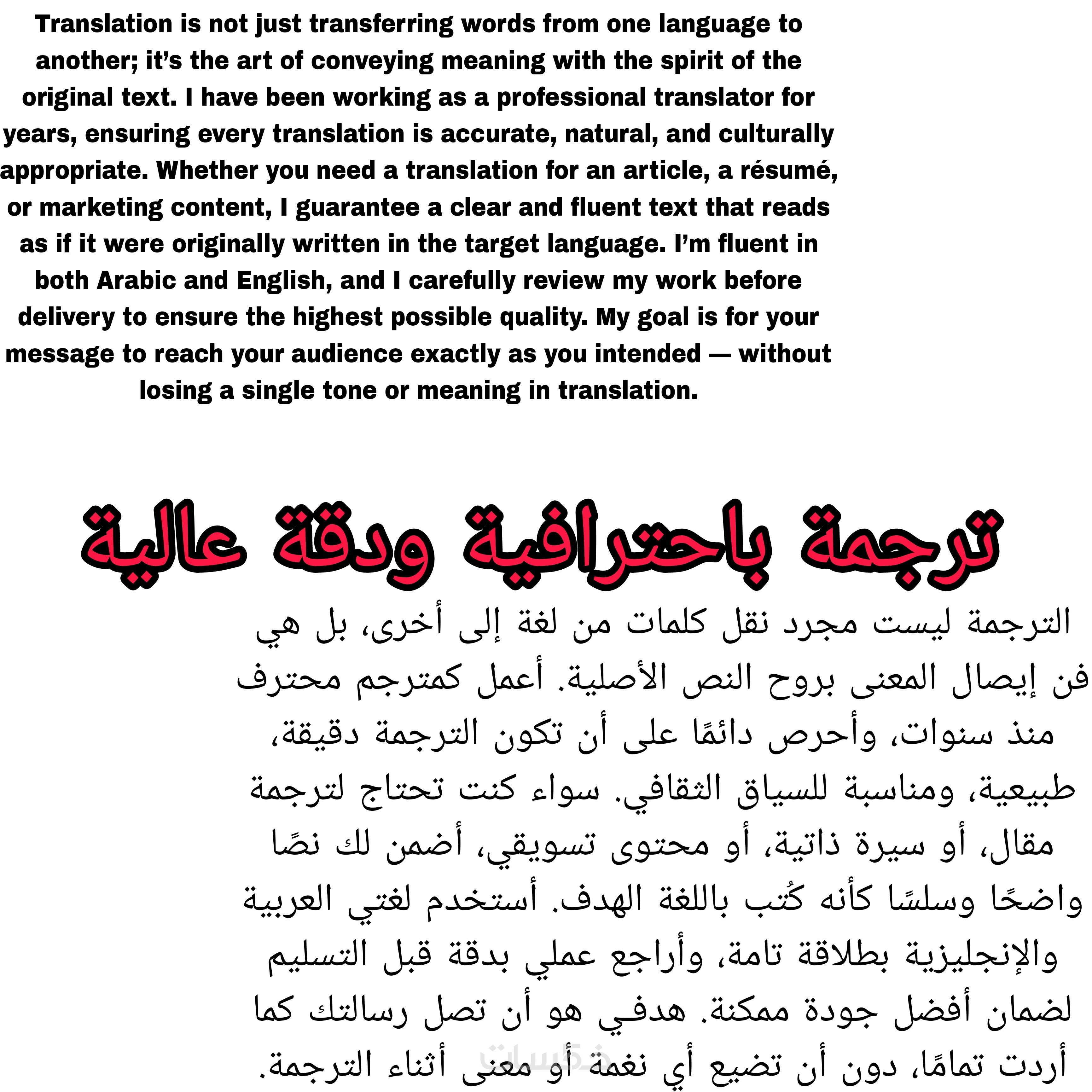 اقدم ترجمة من العربية إلي الإنجليزية و العكس، ترجمة إحترافية
