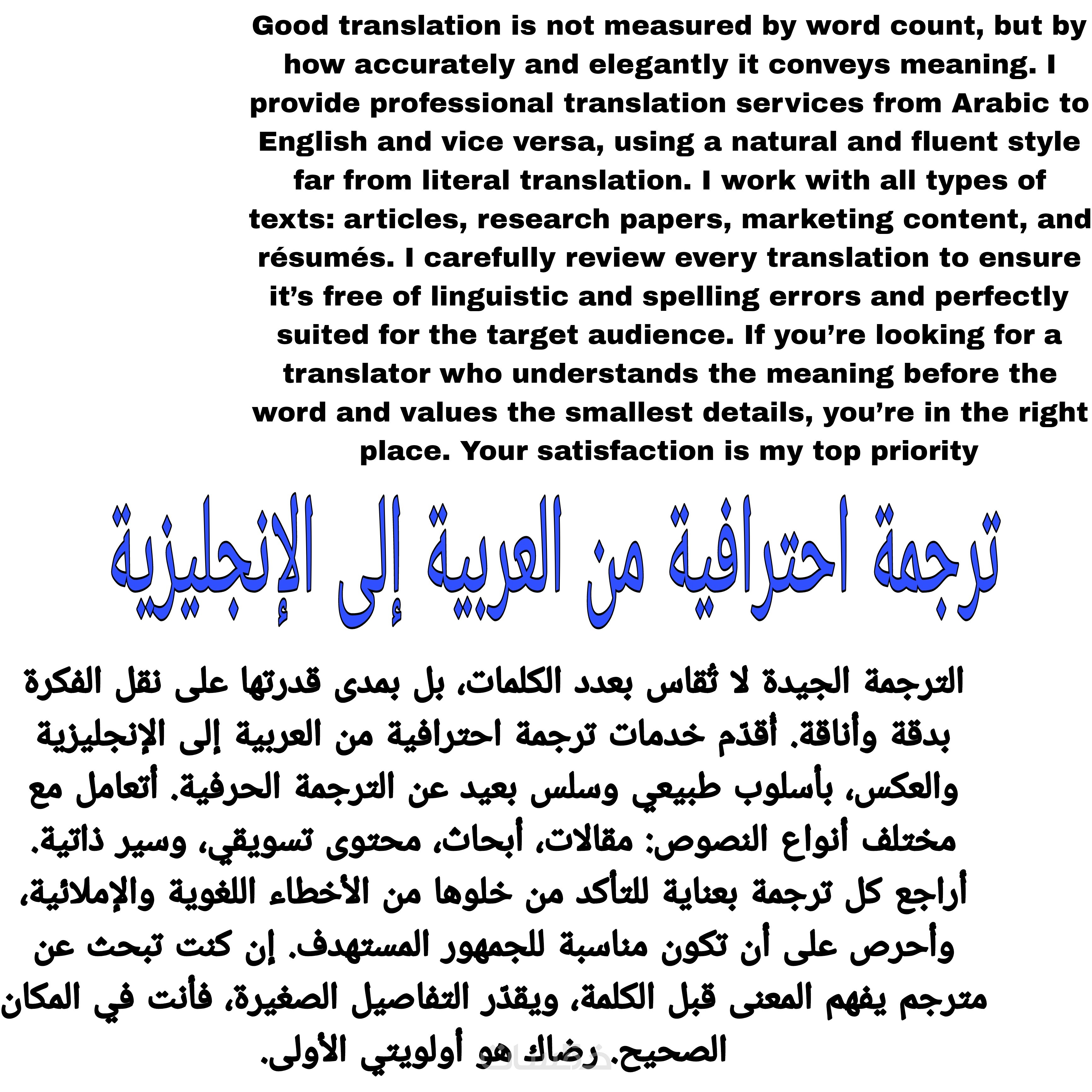 اقدم ترجمة من العربية إلى الإنجليزية والعكس ترجمة إحترافية