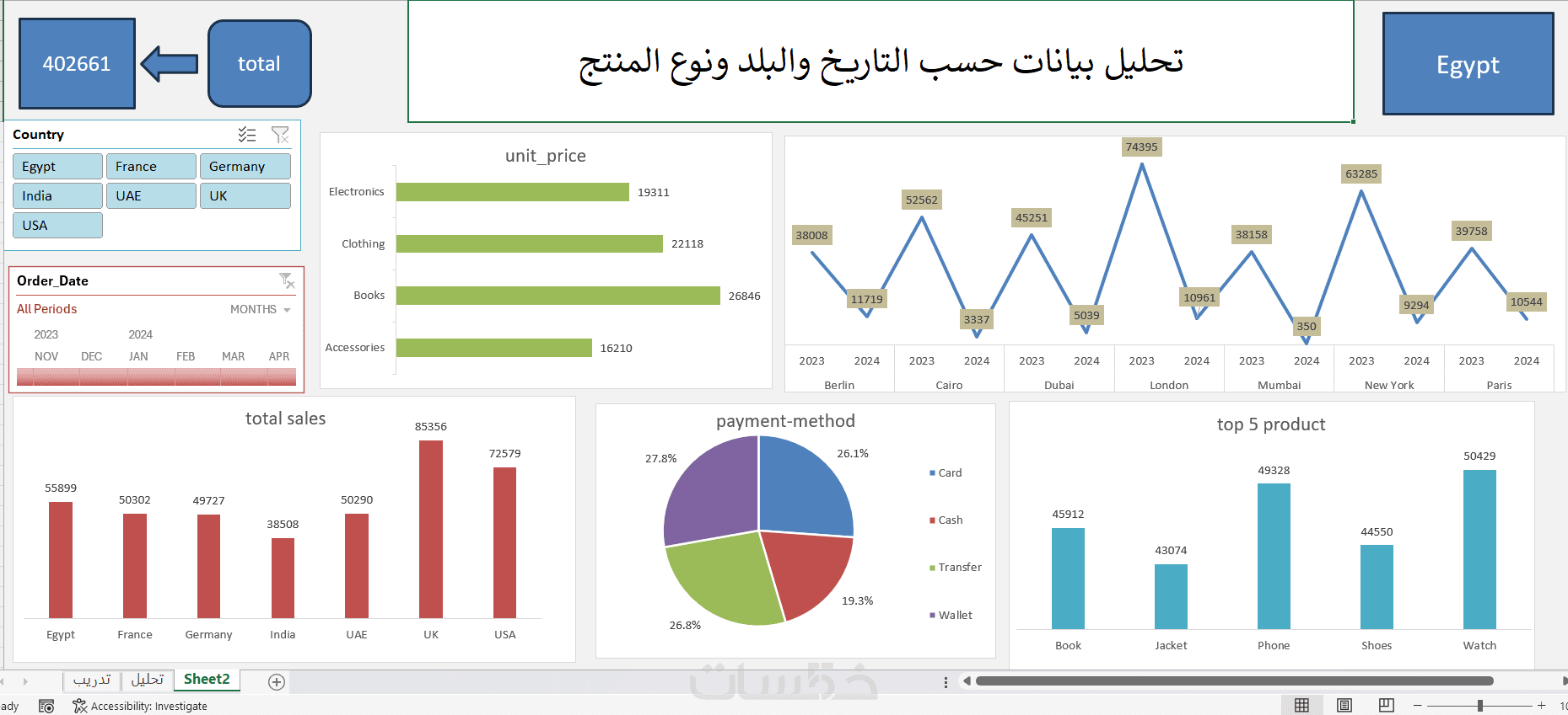 تحليل البيانات وتنفيذ لوحات معلومات تفاعلية باستخدام Excel.