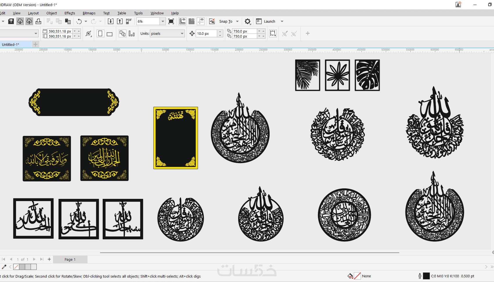 تصاميم 2d للقص على مكنات الليزر و CNC ببرنامج Corel Drow