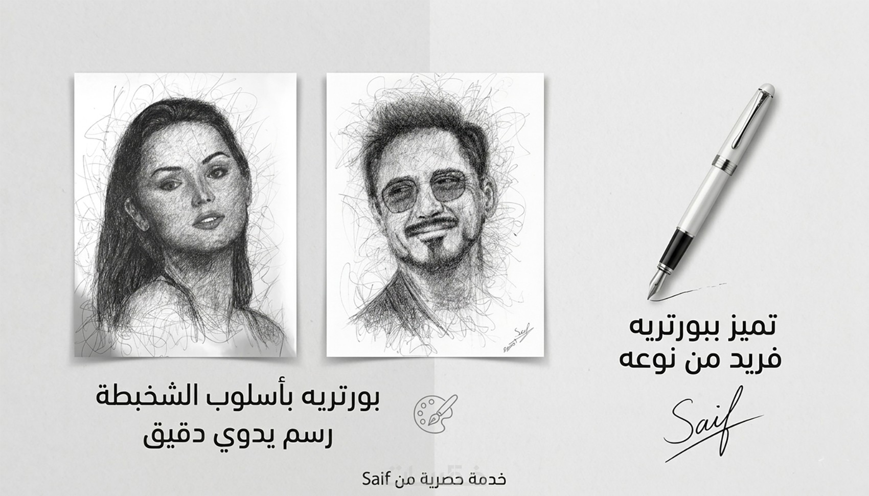 رسم بورتريه احترافي بأسلوب الشخبطة Scribble Art بالقلم الجاف