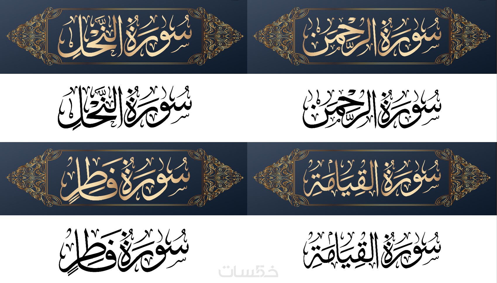 أسماء سور القرآن الكريم بخط الثلث قوالب فيكتور قابلة للتعديل
