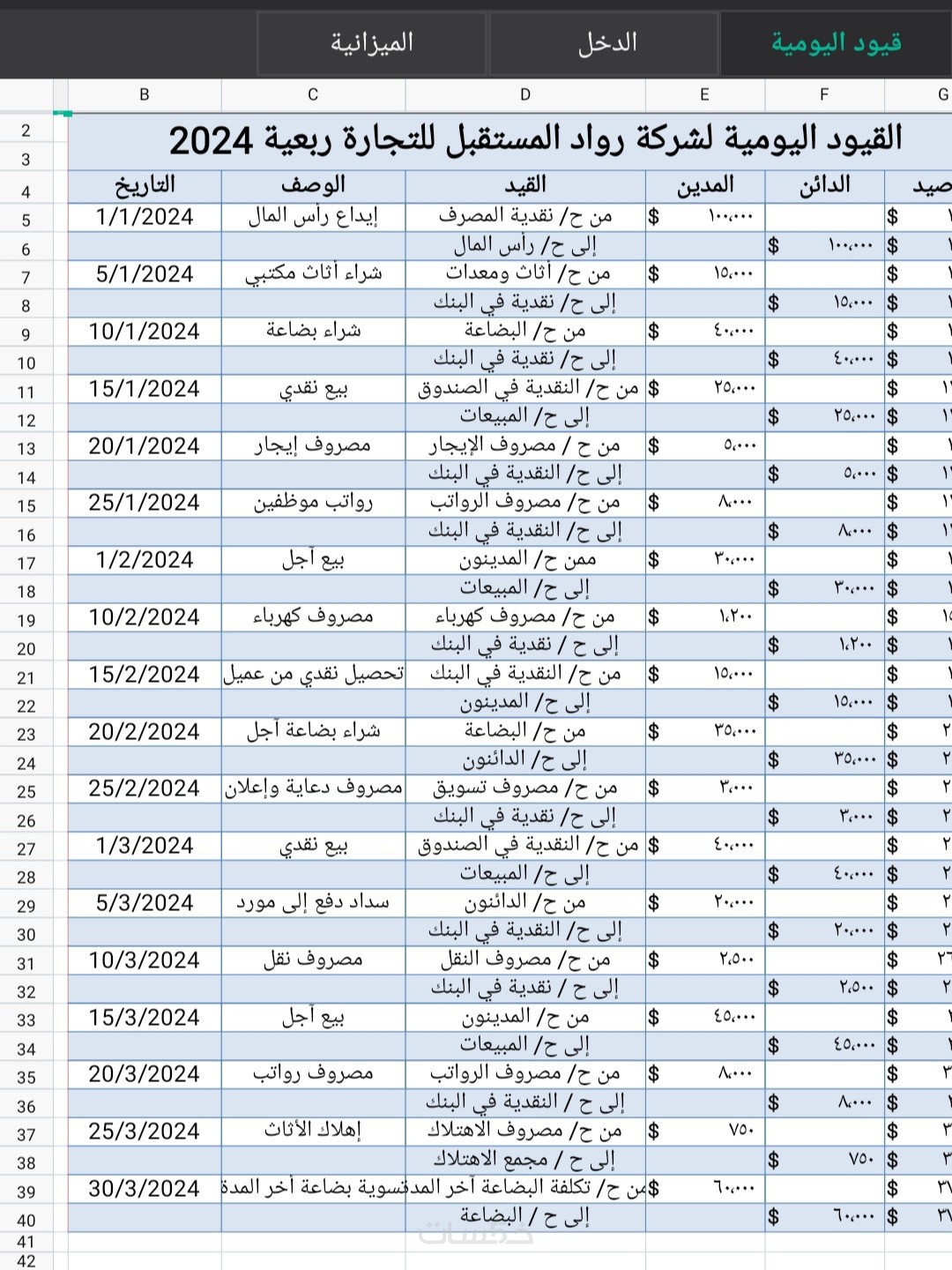 محاسب مالي على برنامج اكسل واعداد القيود اليومية