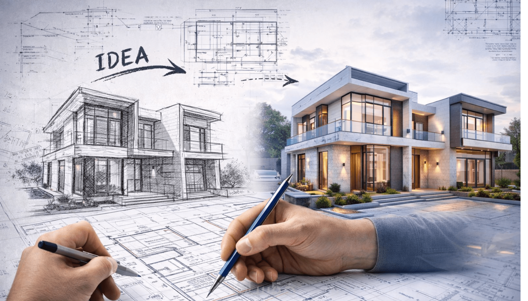 تحويل الأفكار ورسومات الكروكي للمخططات تنفيذية كاملة.