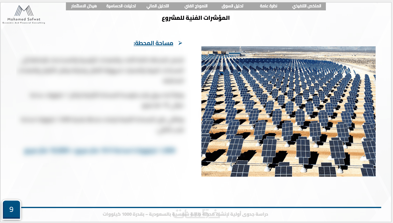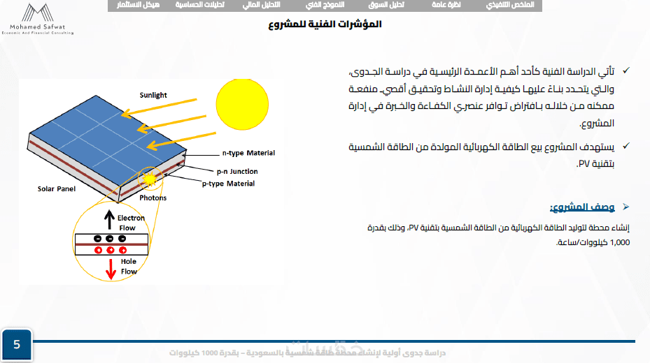 دراسة جدوى لمشروع بيع الكهرباء للحكومة من الطاقة الشمسية
