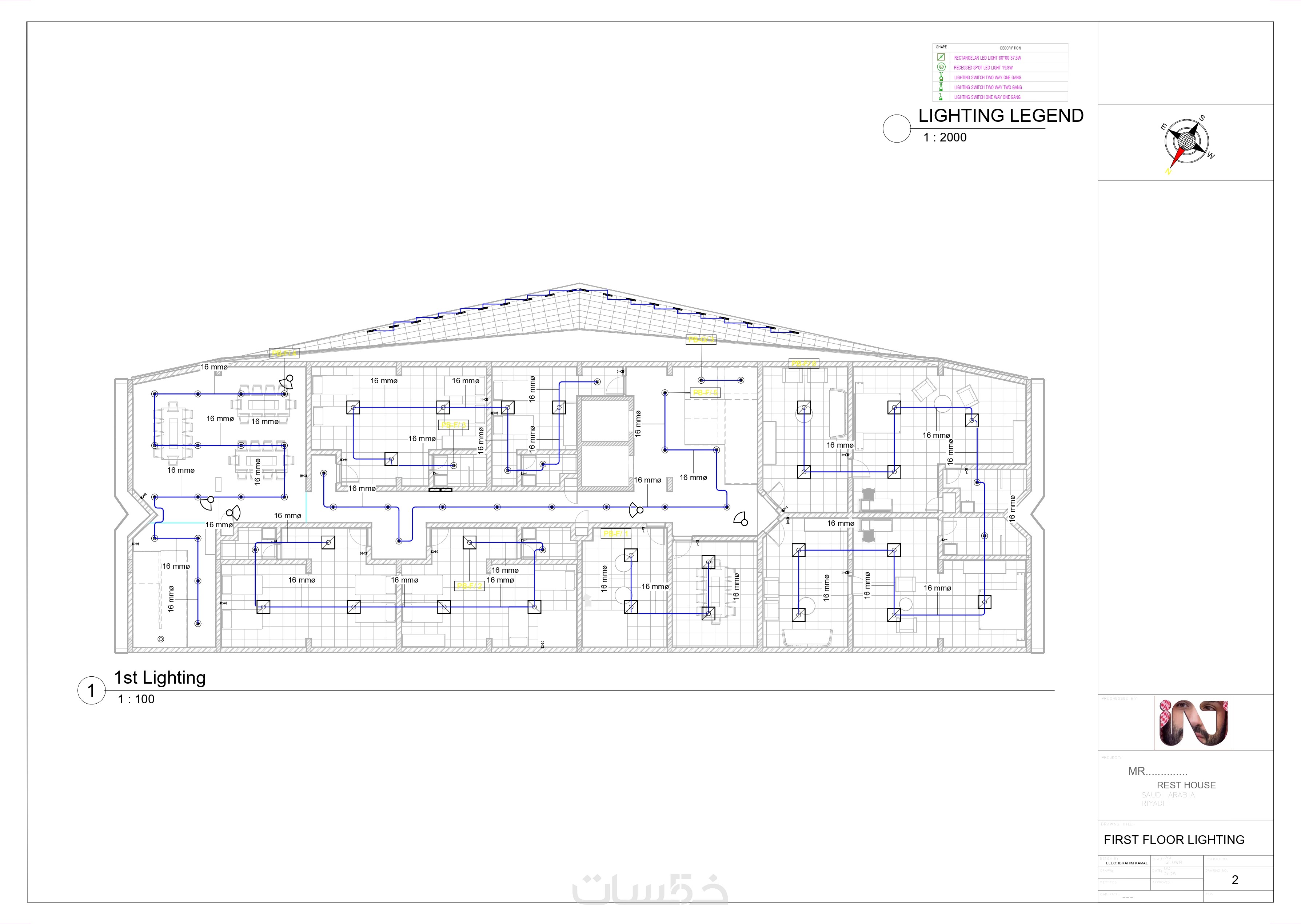 تصميم مخططات الاضاءة ومخططات الكهرباء لجميع المنشآت