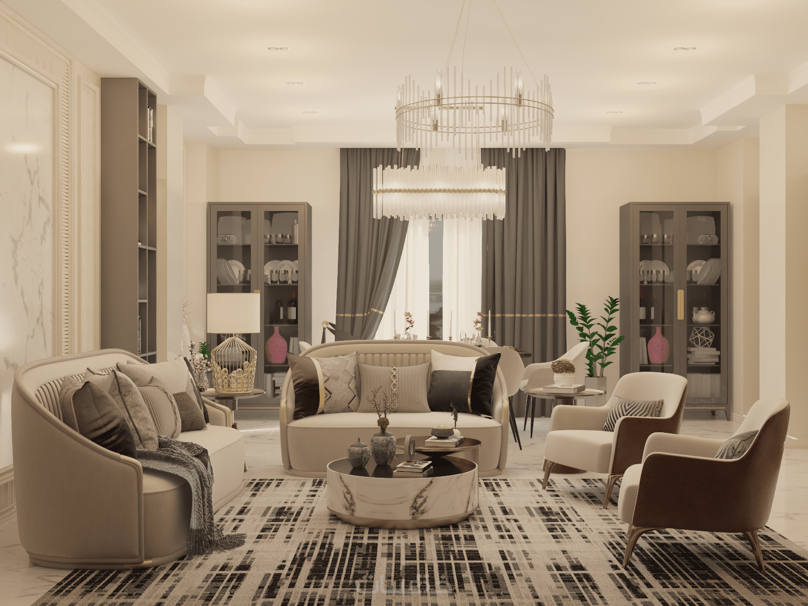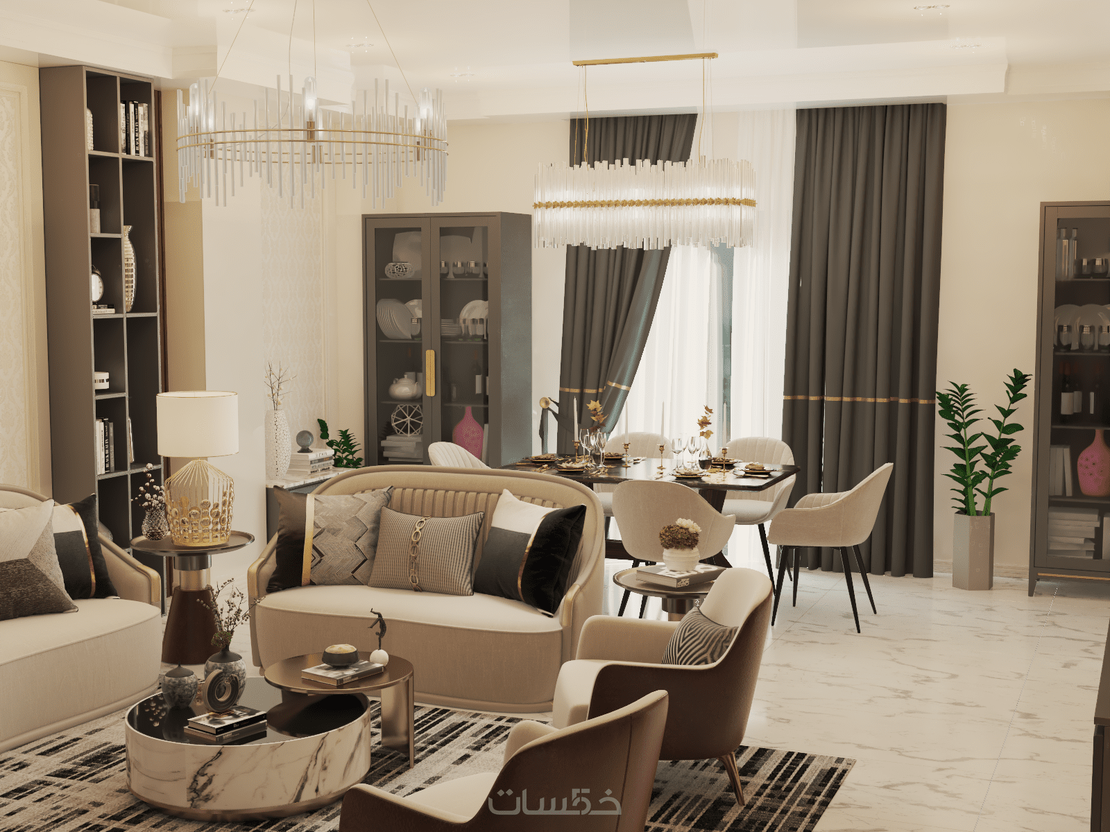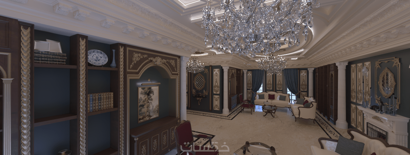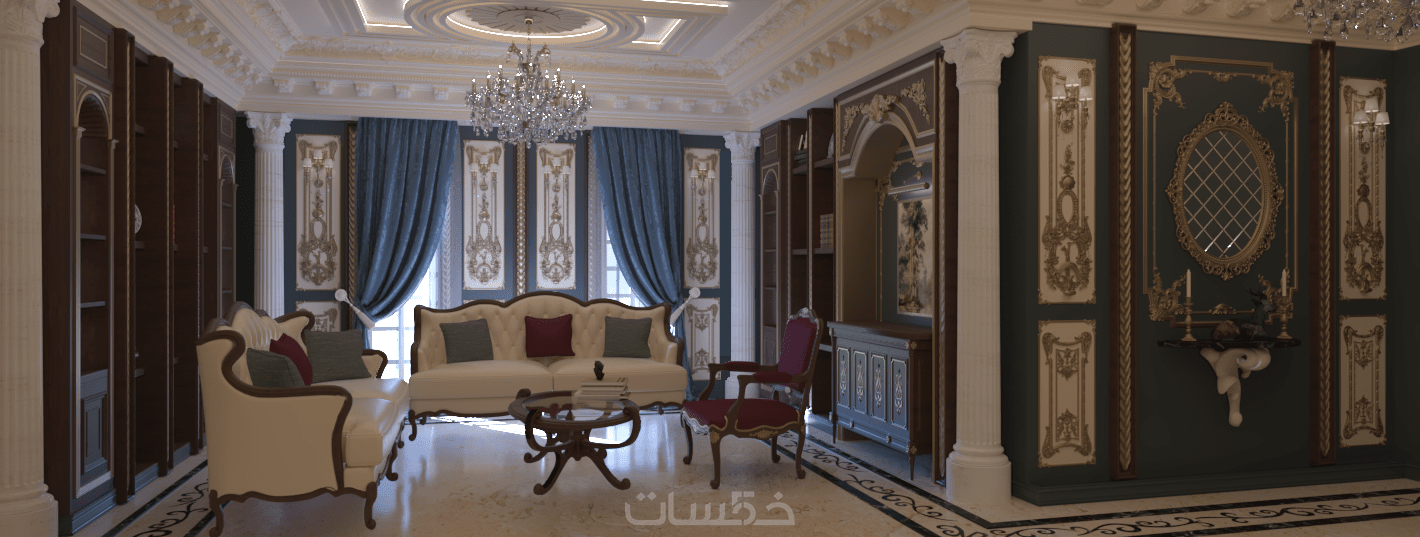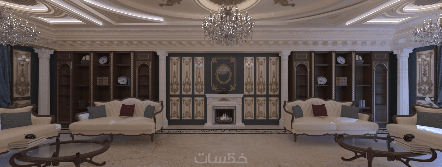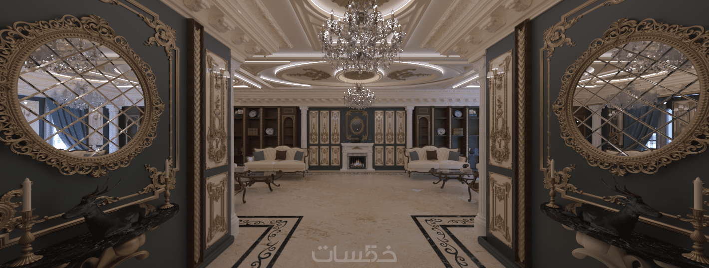 تصميم داخلي ريسبشن نيو كلاسيك يعكس الفخامة والرقي