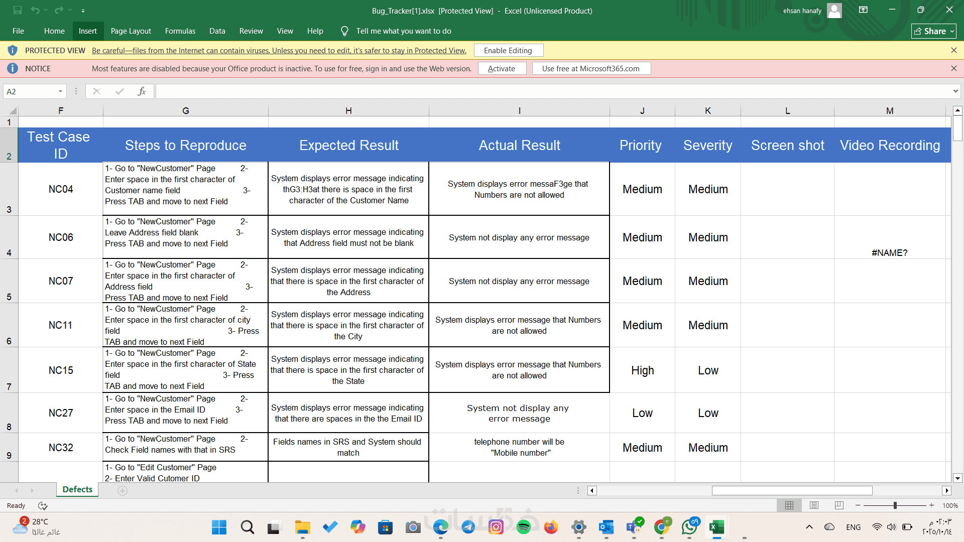 Manual Testing للمواقع والتطبيقات، اكتشاف الأخطاء