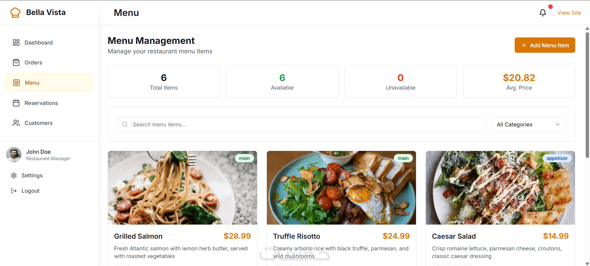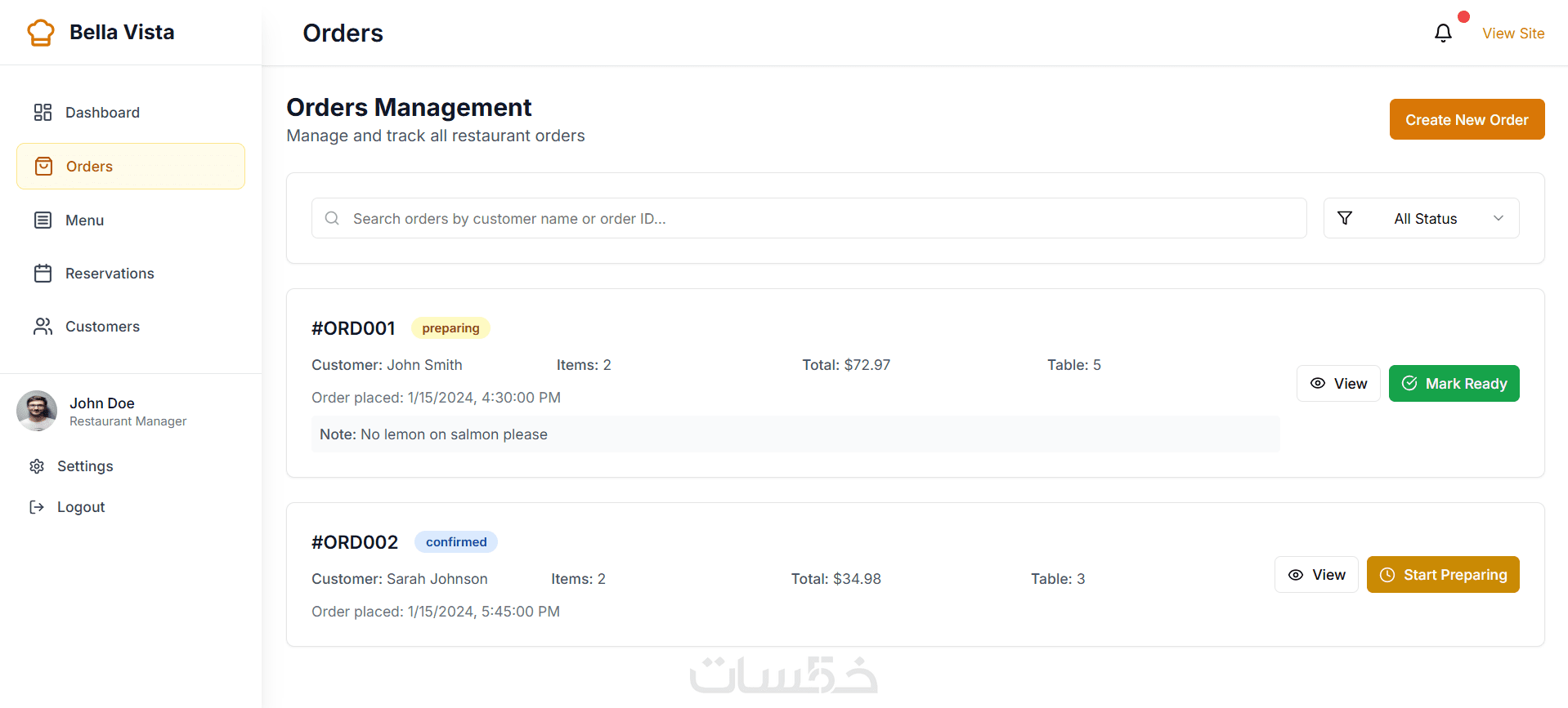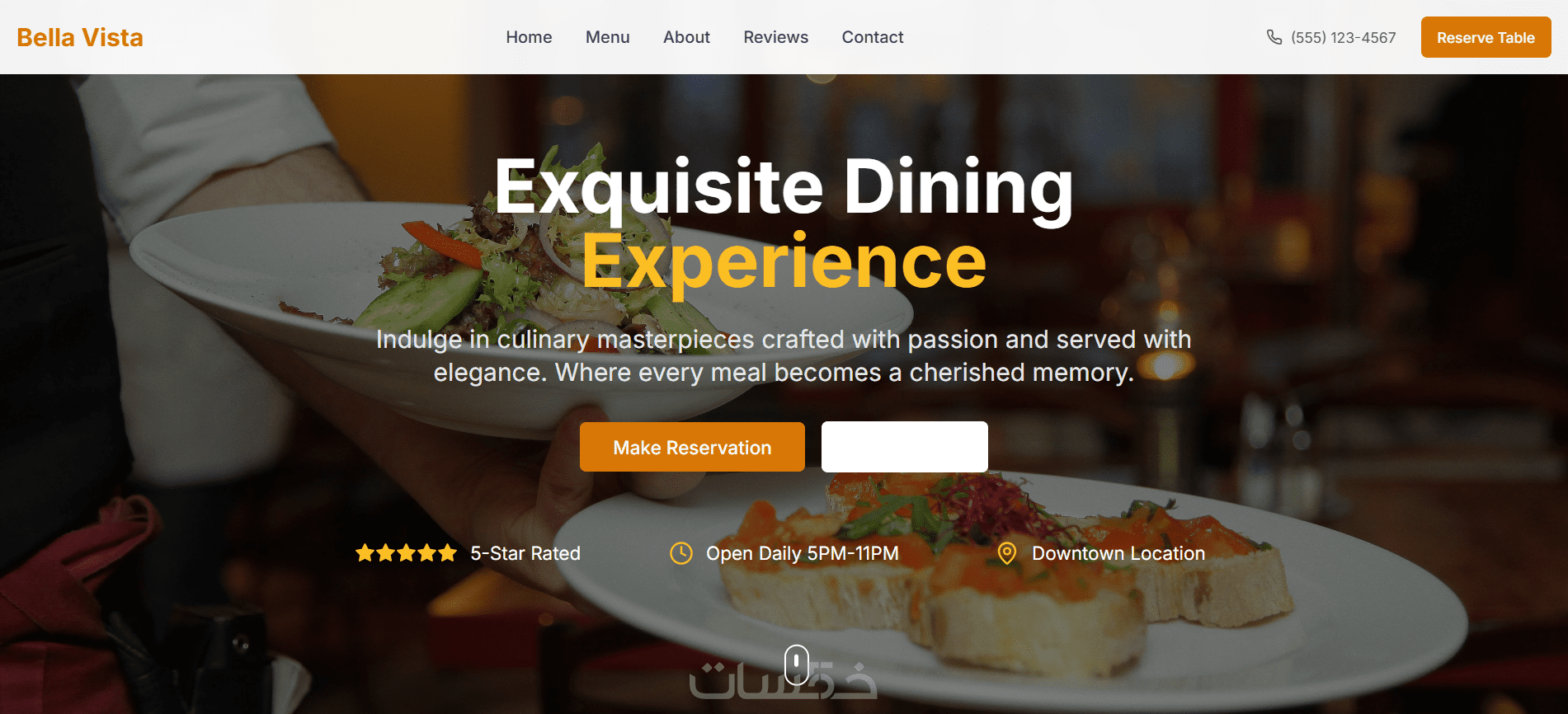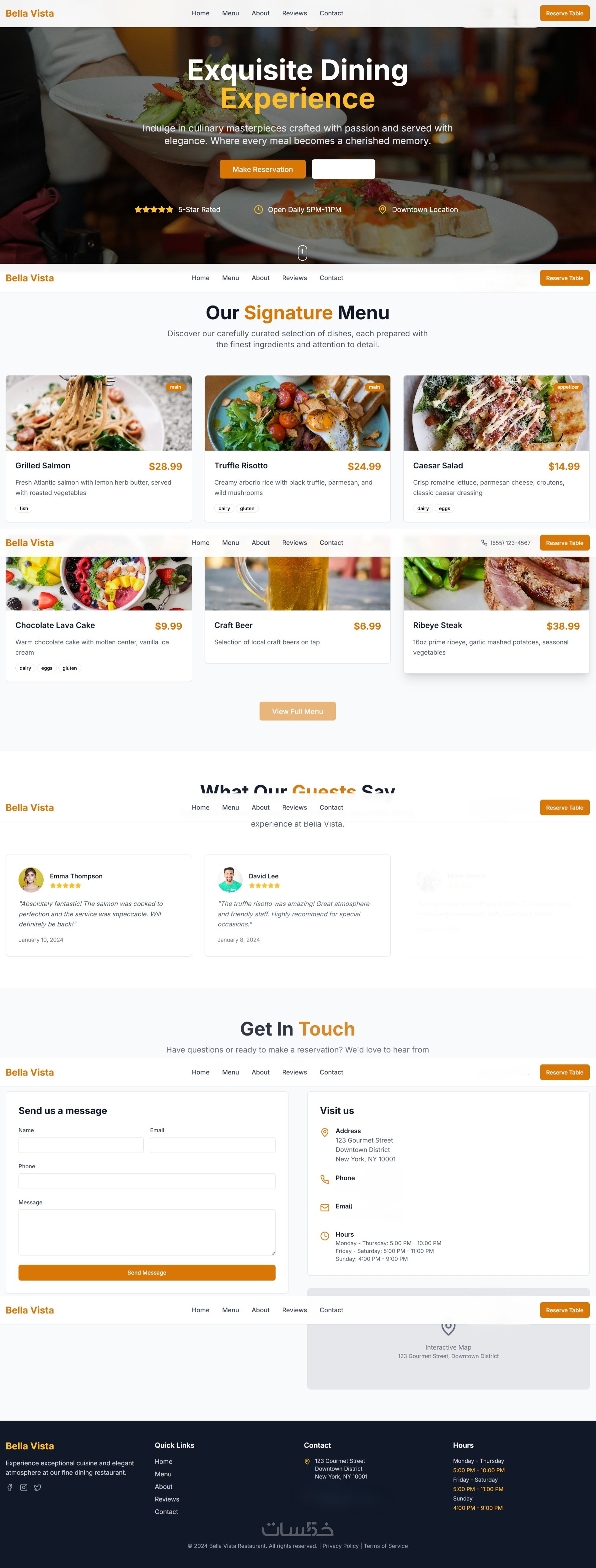 تطوير موقع احترافي لإدارة المطاعم مع لاندينج بيج وداشبورد