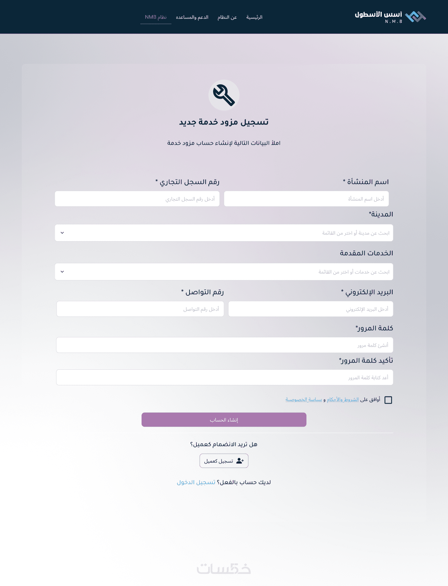 خدمات لصفحة