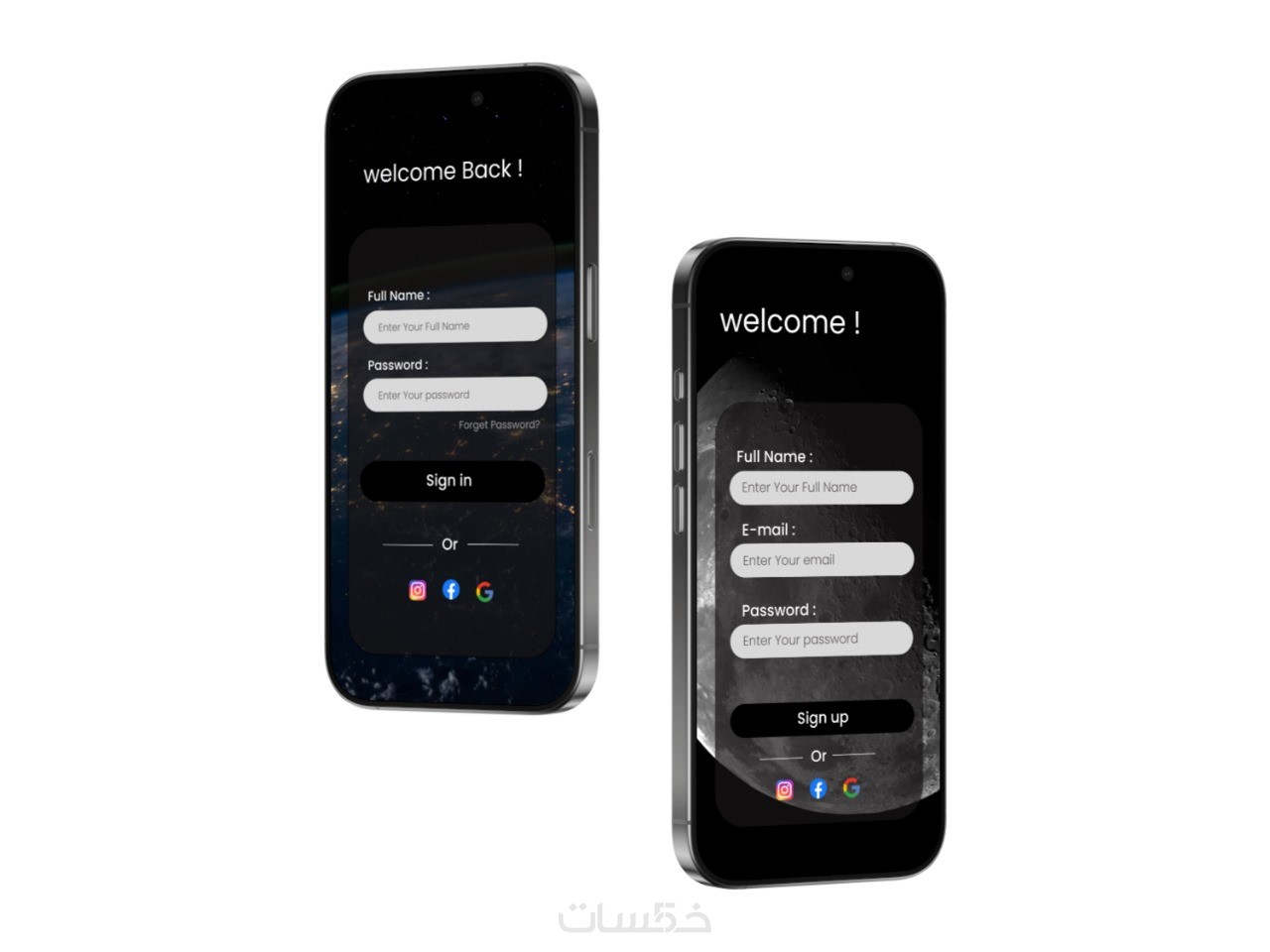تصميم وتطوير شاشة التسجيل و تسجيل دخول للتطبيق الخاص بك