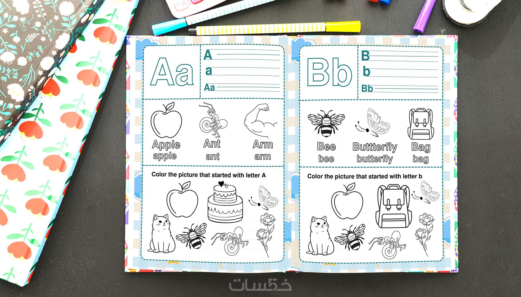 تصميم كتاب للأطفال لتعليم الحروف والأرقام والتلوين والدين