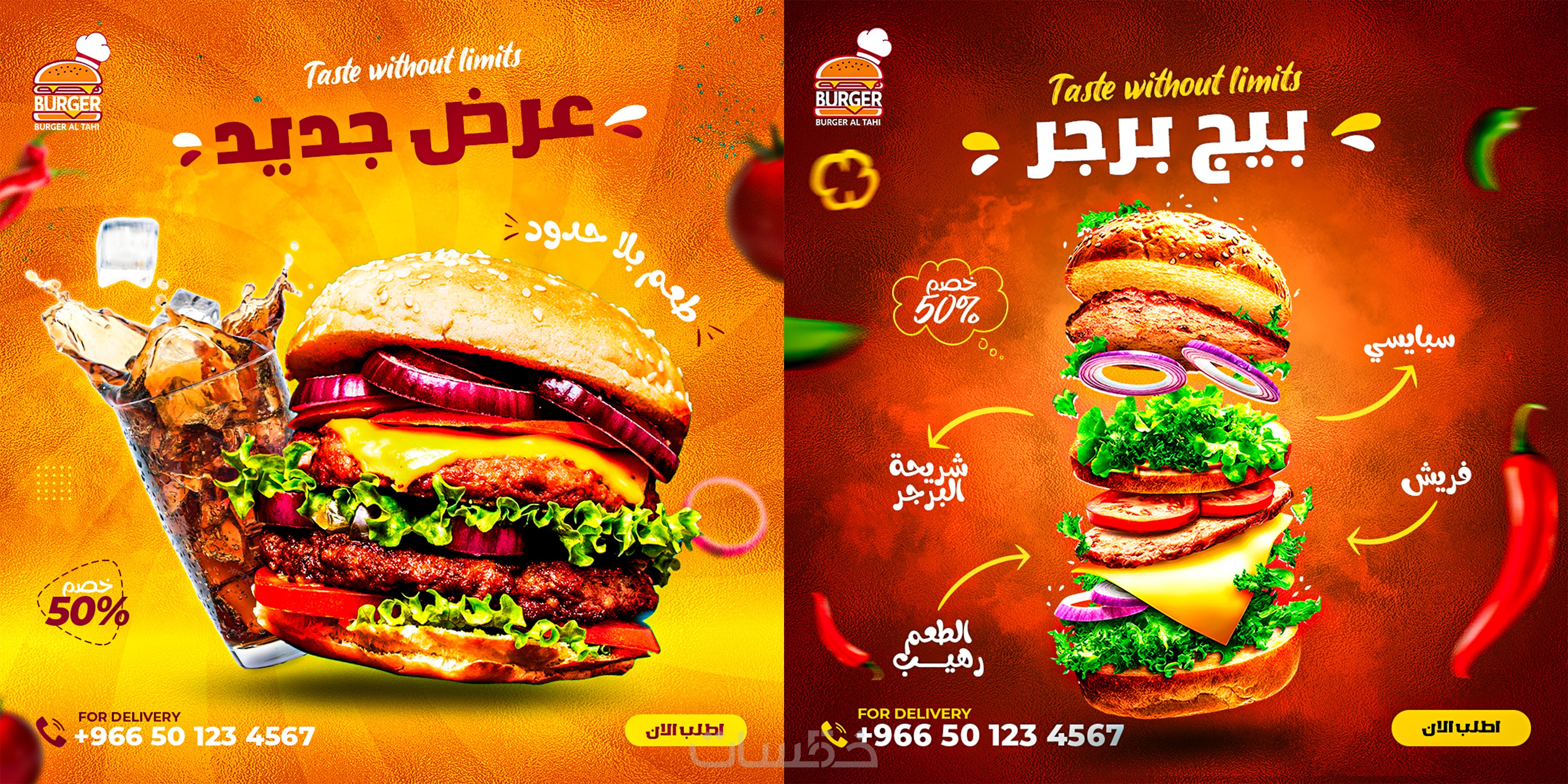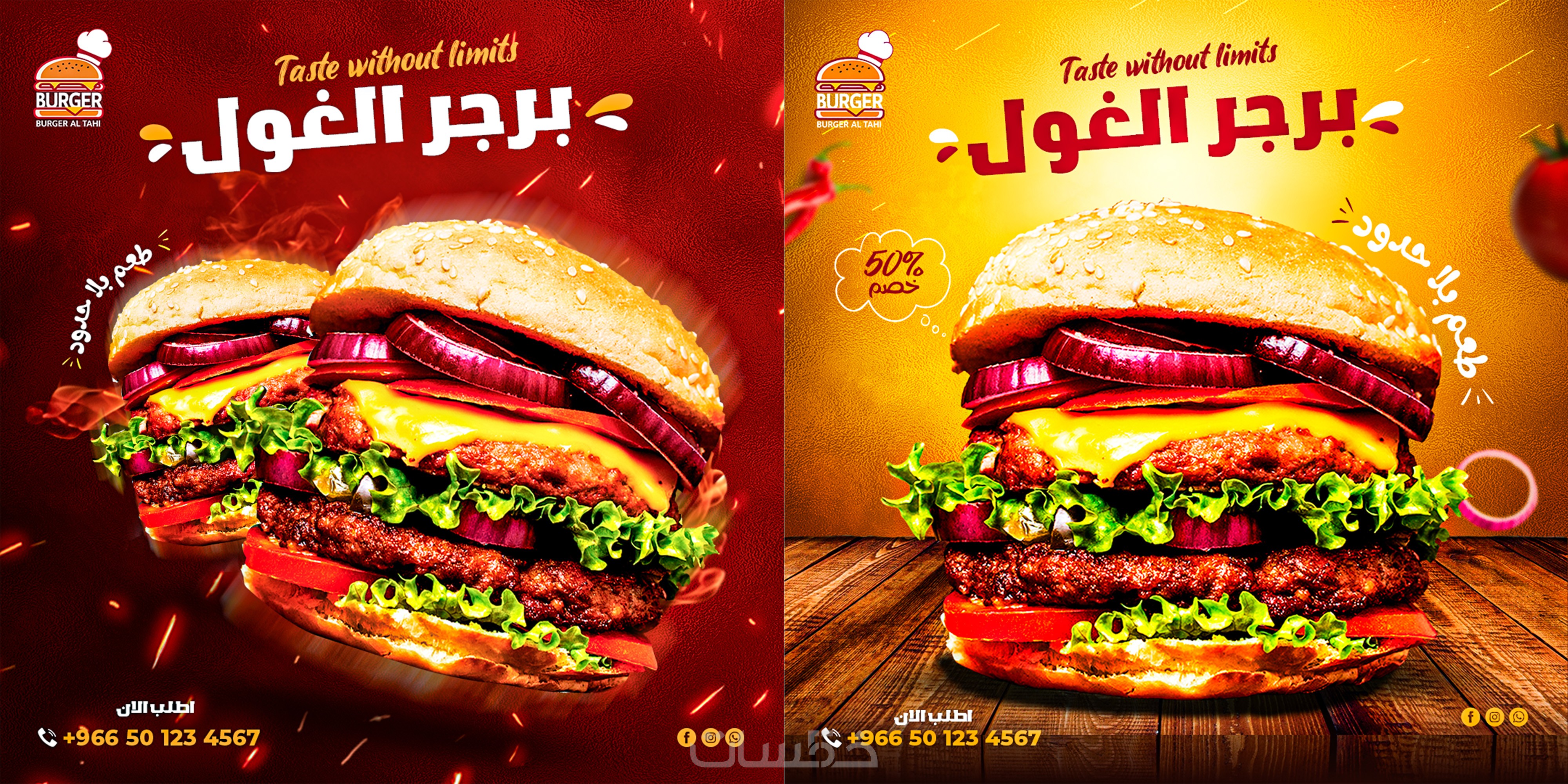 تصميم منشورات سوشيال ميديا احترافية للمطاعم.
