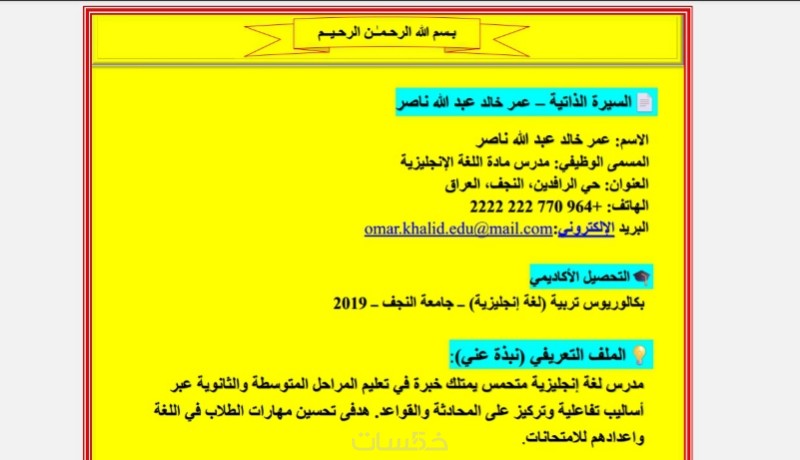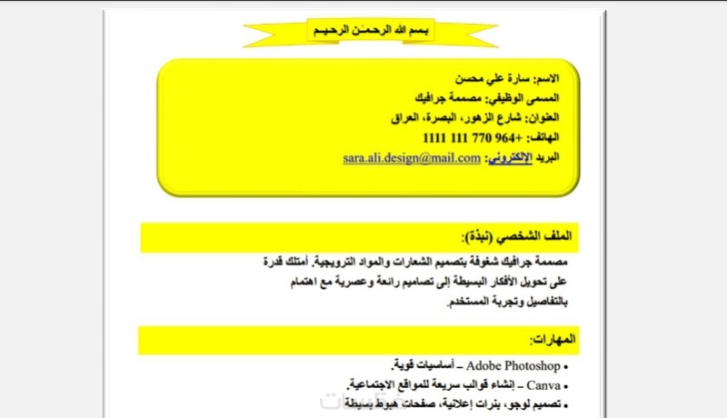 تصميم سيرة ذاتية احترافية جاهزة للتقديم بصيغة PDF او Word