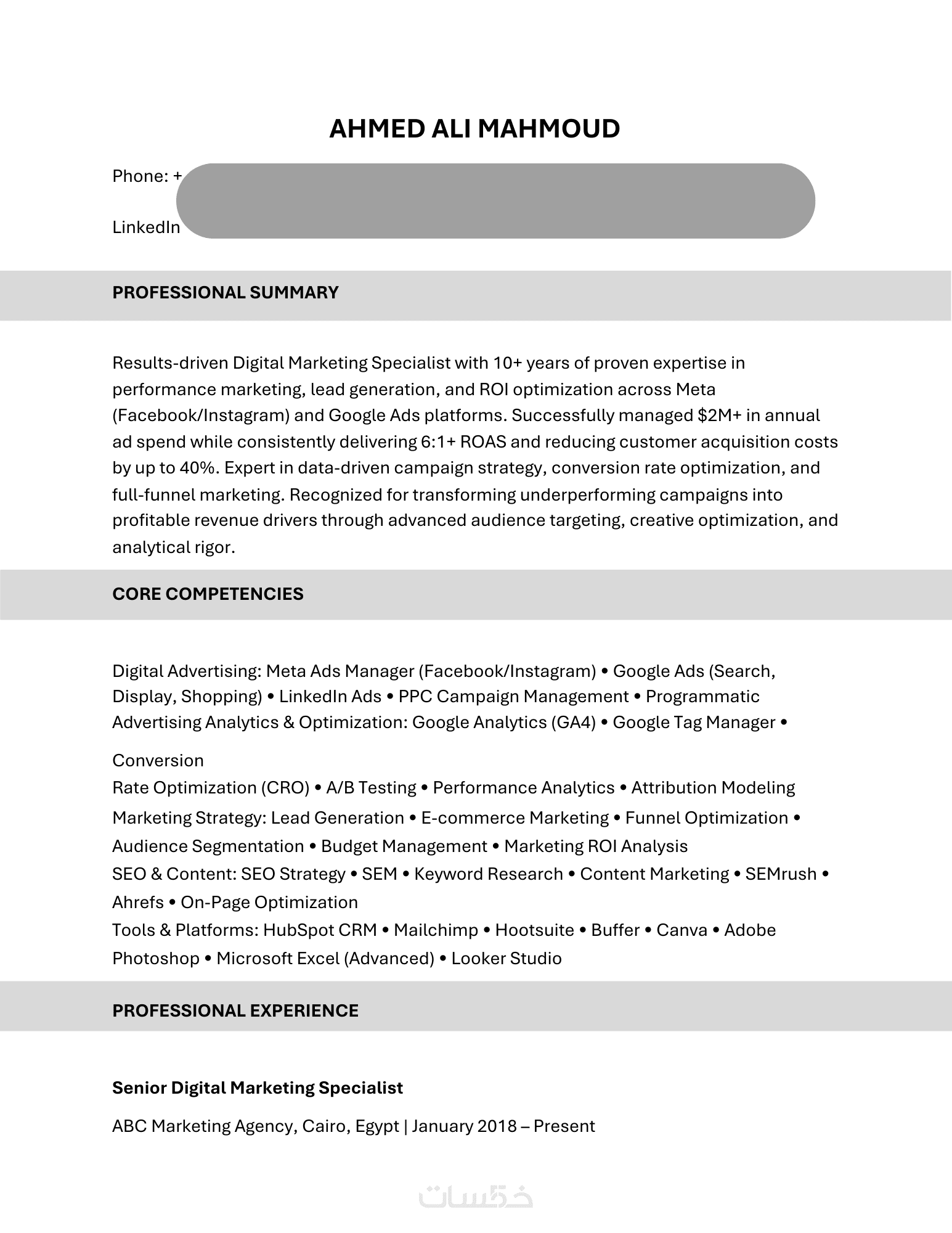 سأكتب لك سيرة ذاتية CV احترافية متوافقة مع نظام ATS
