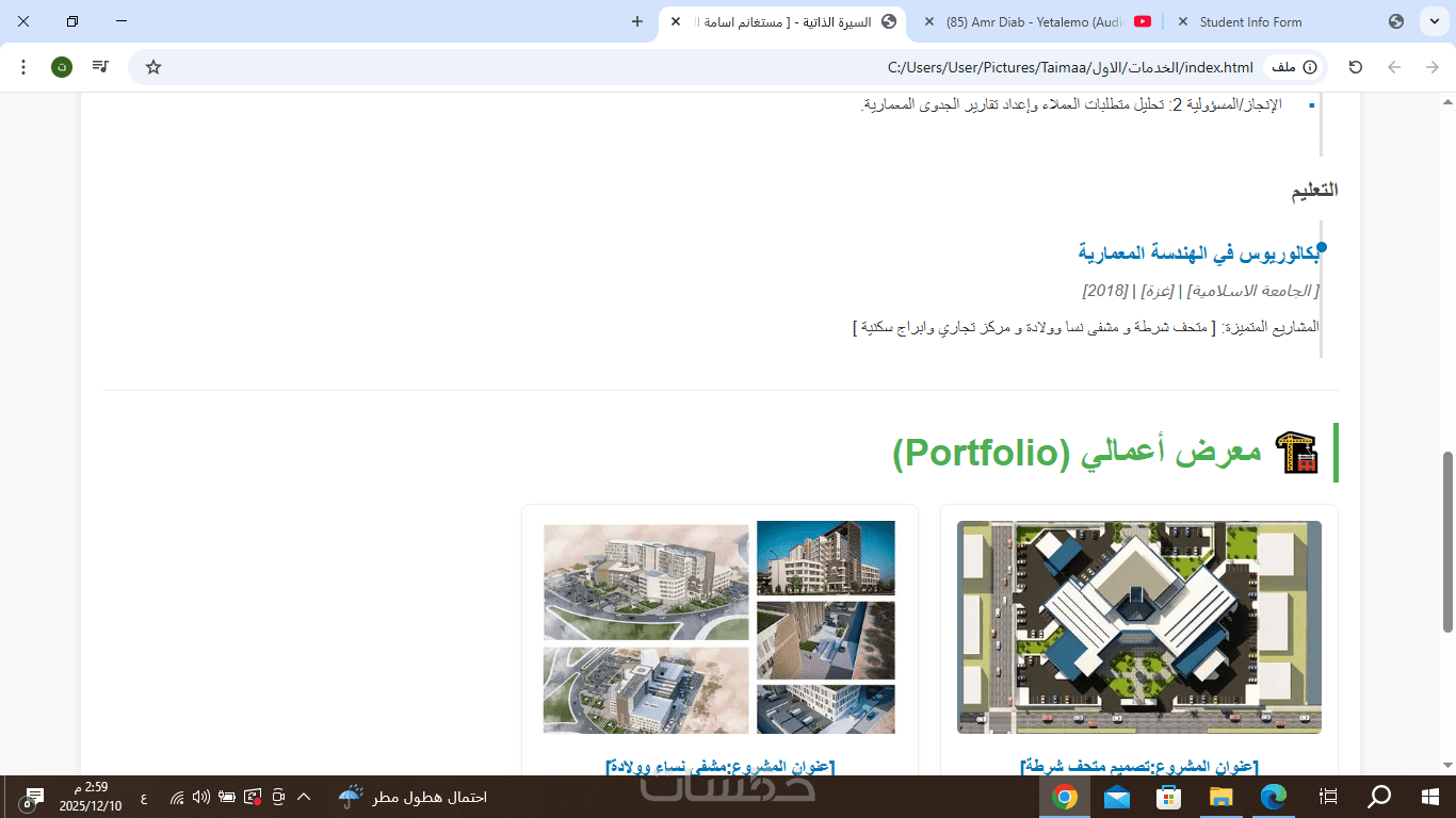 تصميم موقع شخصي Portfolio احترافي ومتجاوب لعرض أعمالك