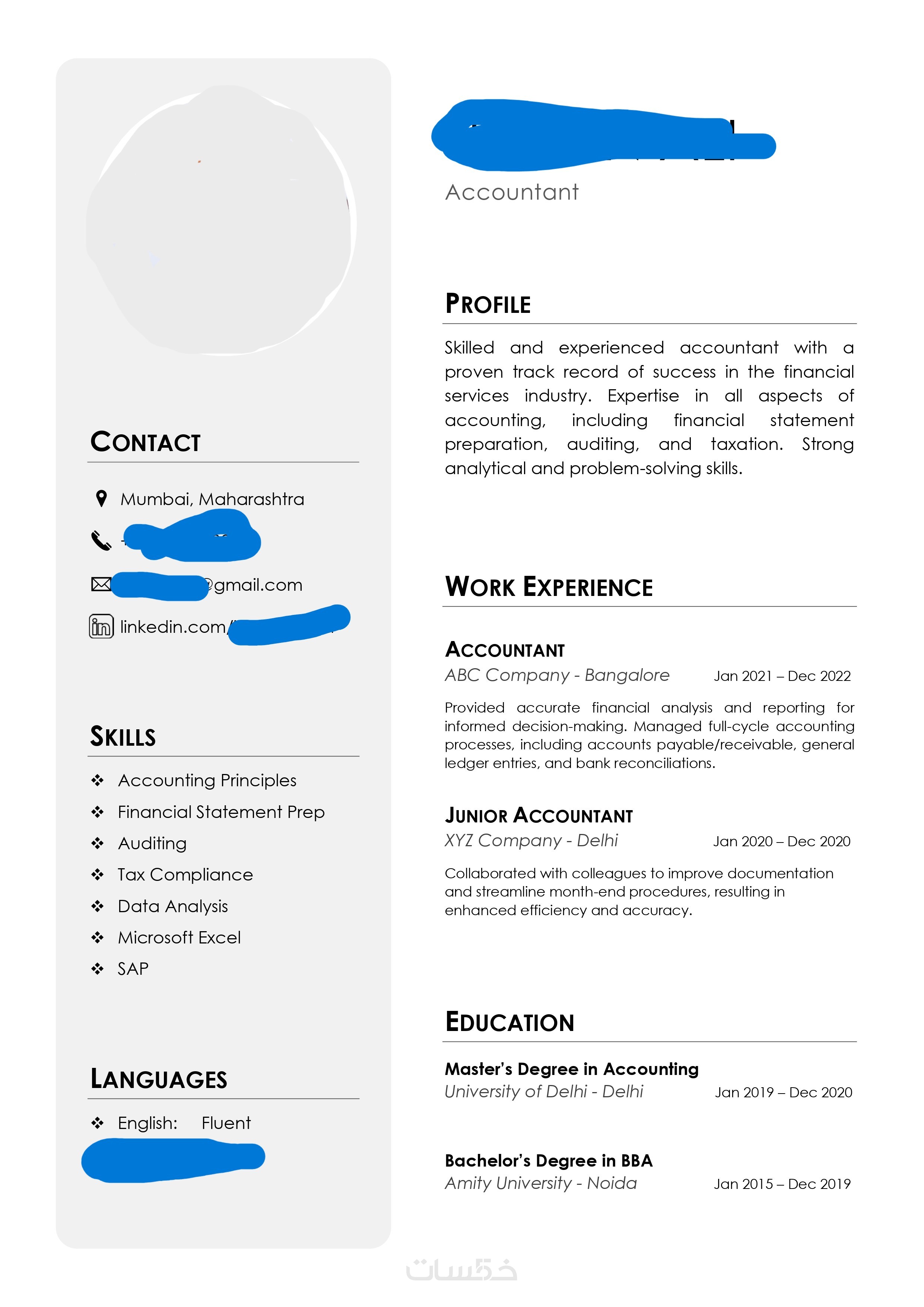 تصميم وصناعة سيرة ذاتية احترافية باللغتين العربي والانجليزي