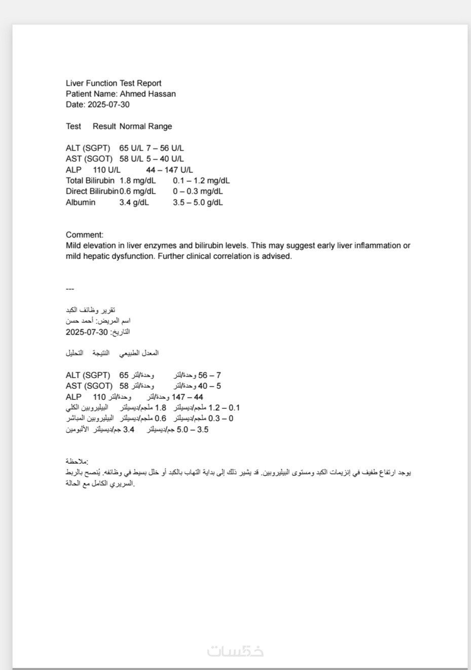 ترجمة تقارير التحاليل الطبية من العربية إلى الإنجليزية أو العكس