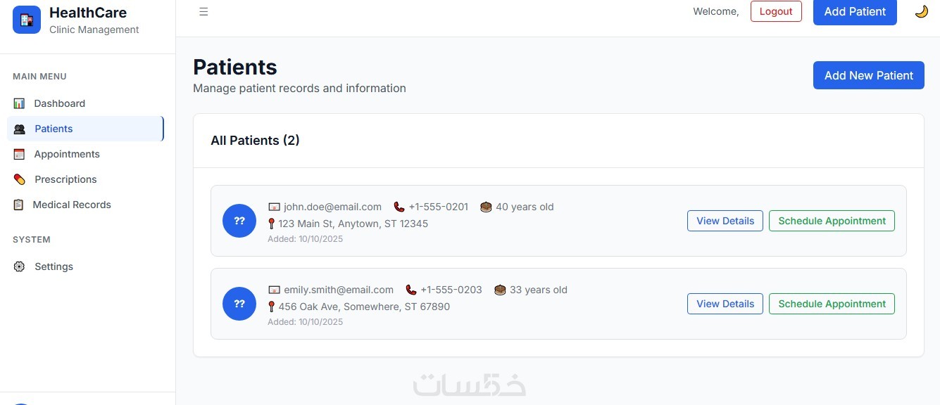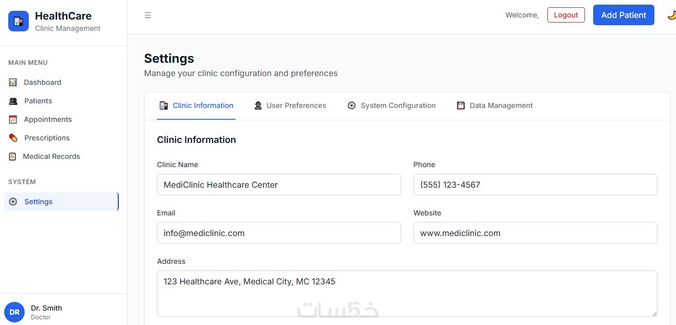 نظام الكتروني لعيادة طبية