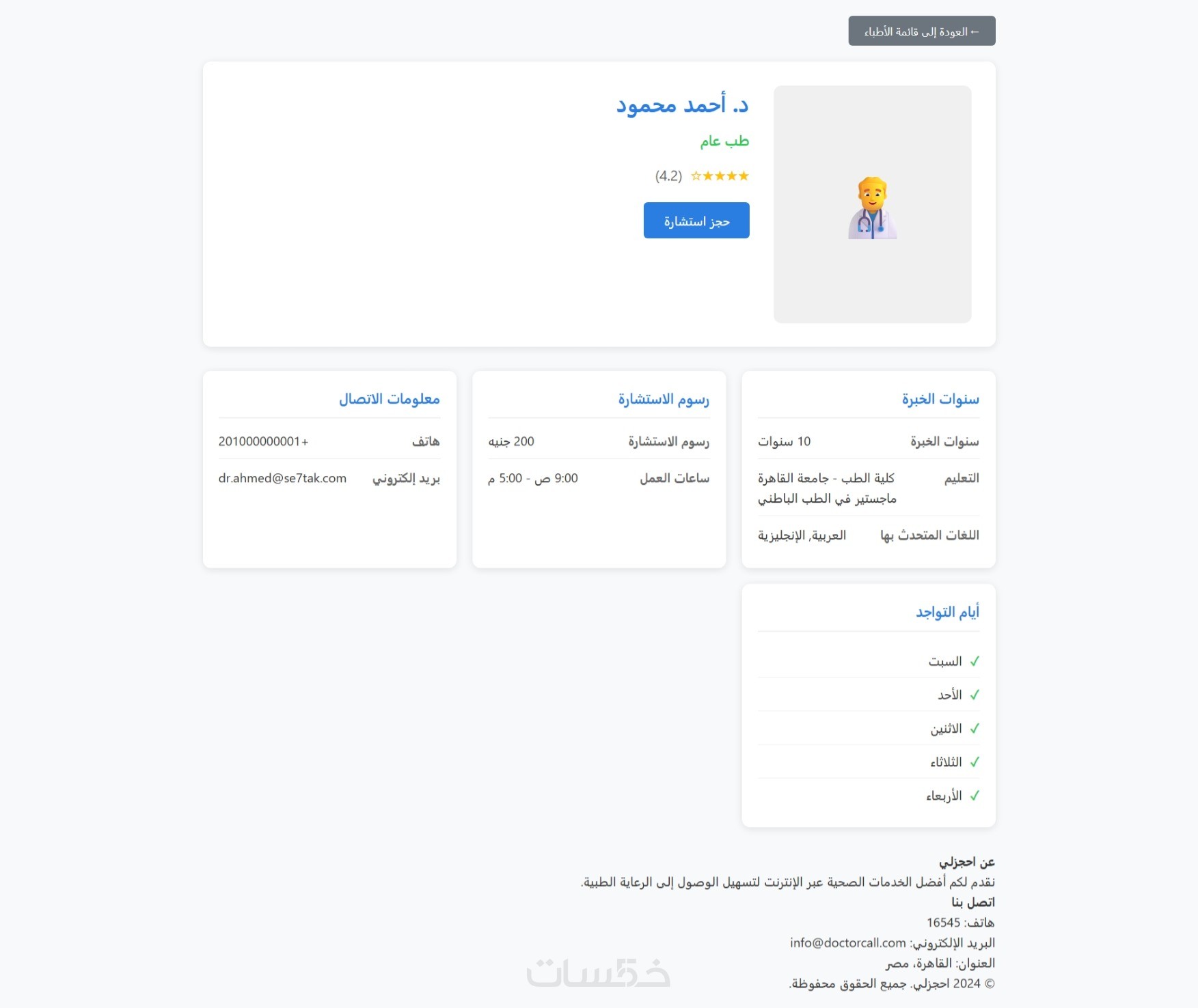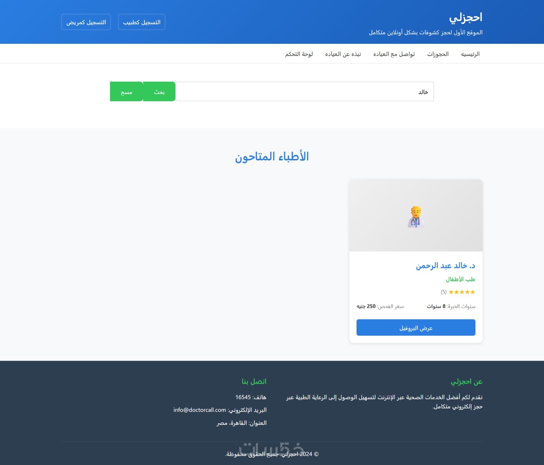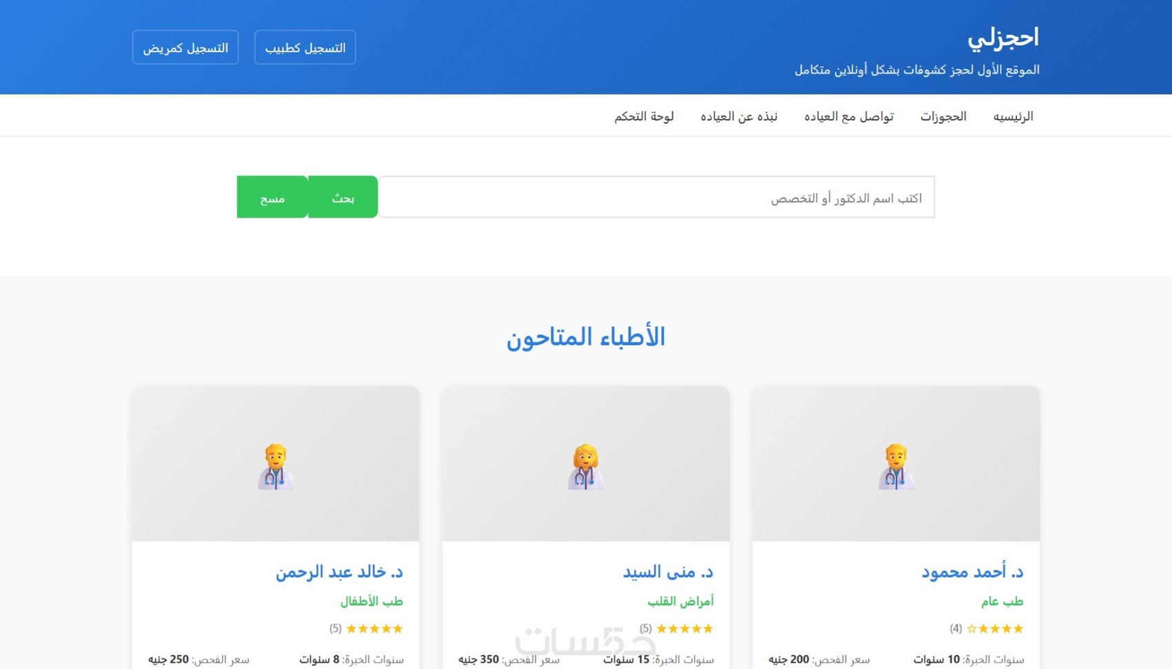 موقع الكتروني الحجز بين المرضي والدكاتره