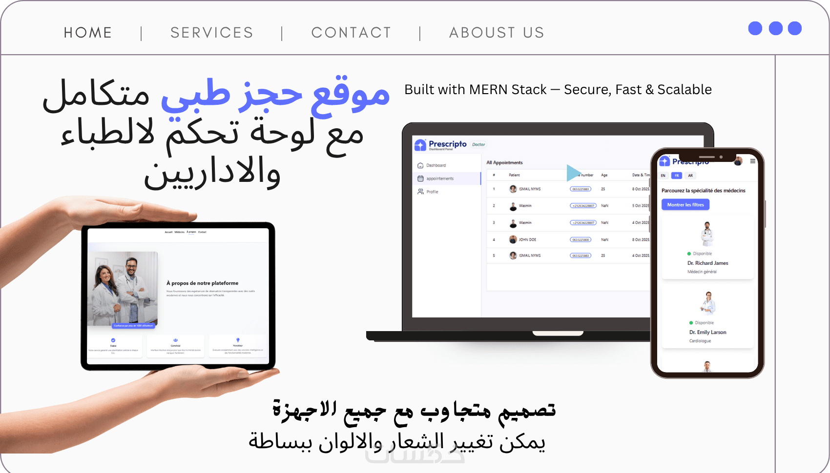 إنشاء نظام حجز طبي متكامل بواجهة إدارة للأطباء والإداريين