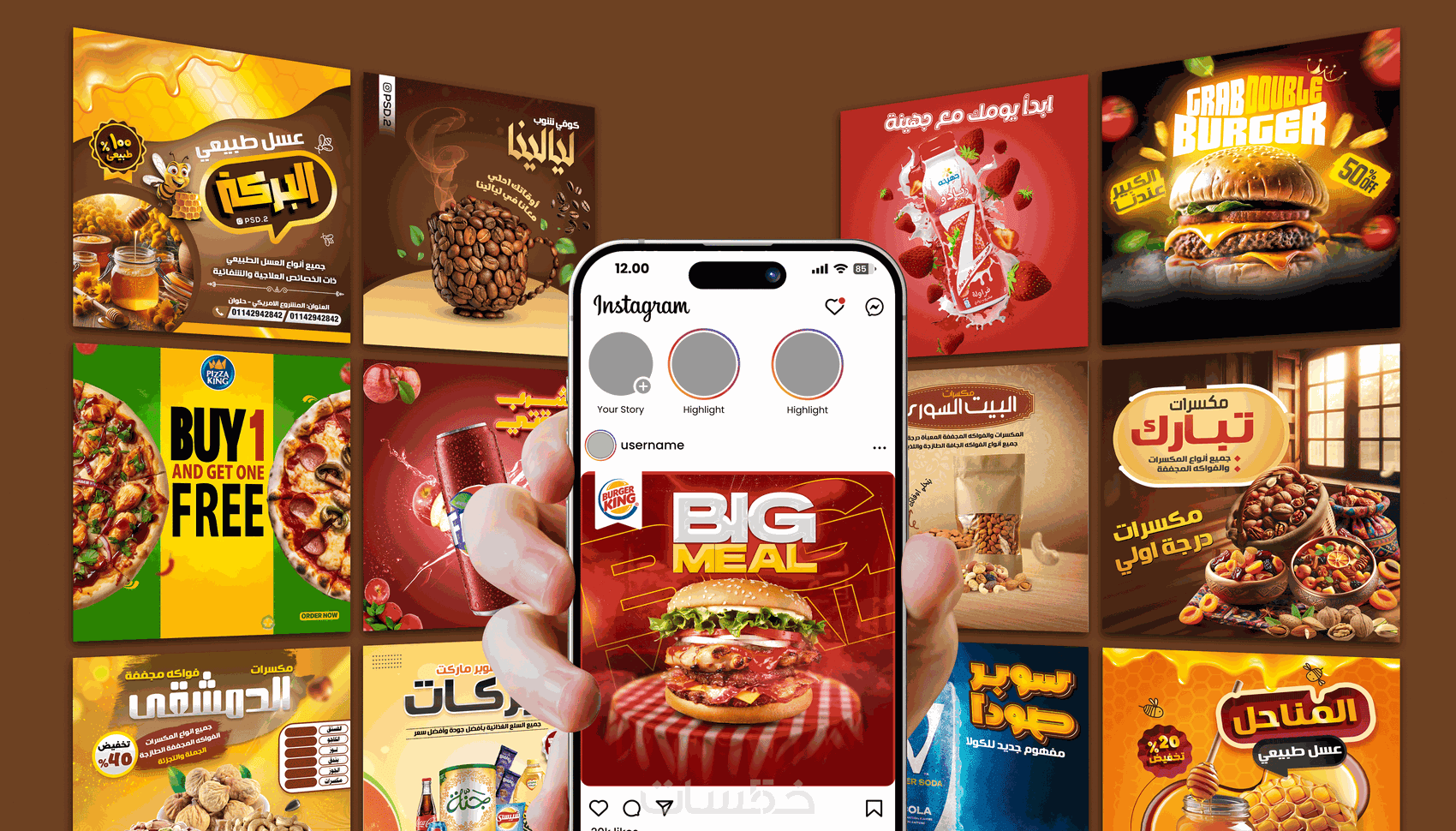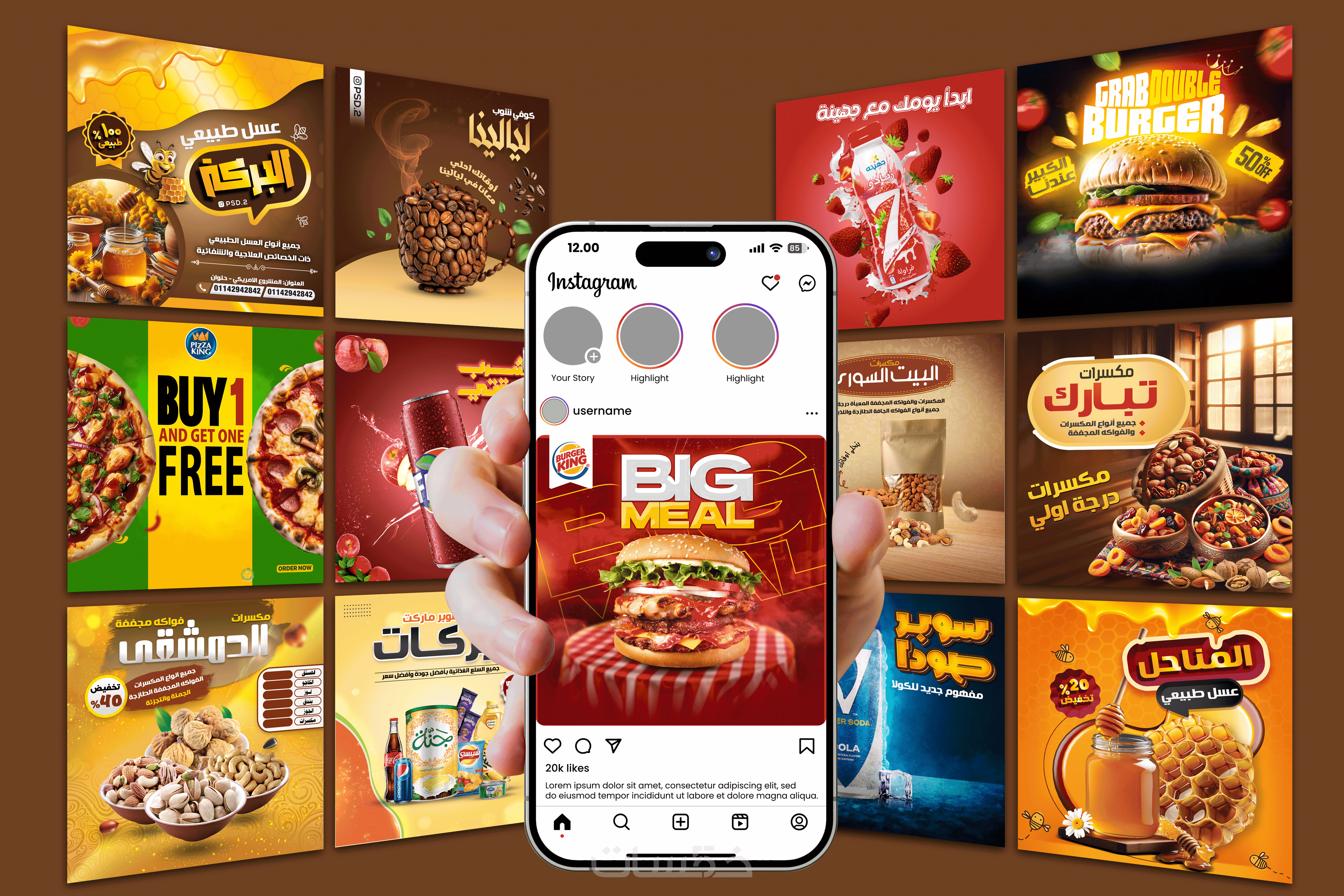 تصميم منشورات احترافية لمطعمك أو منتجك التجاري.