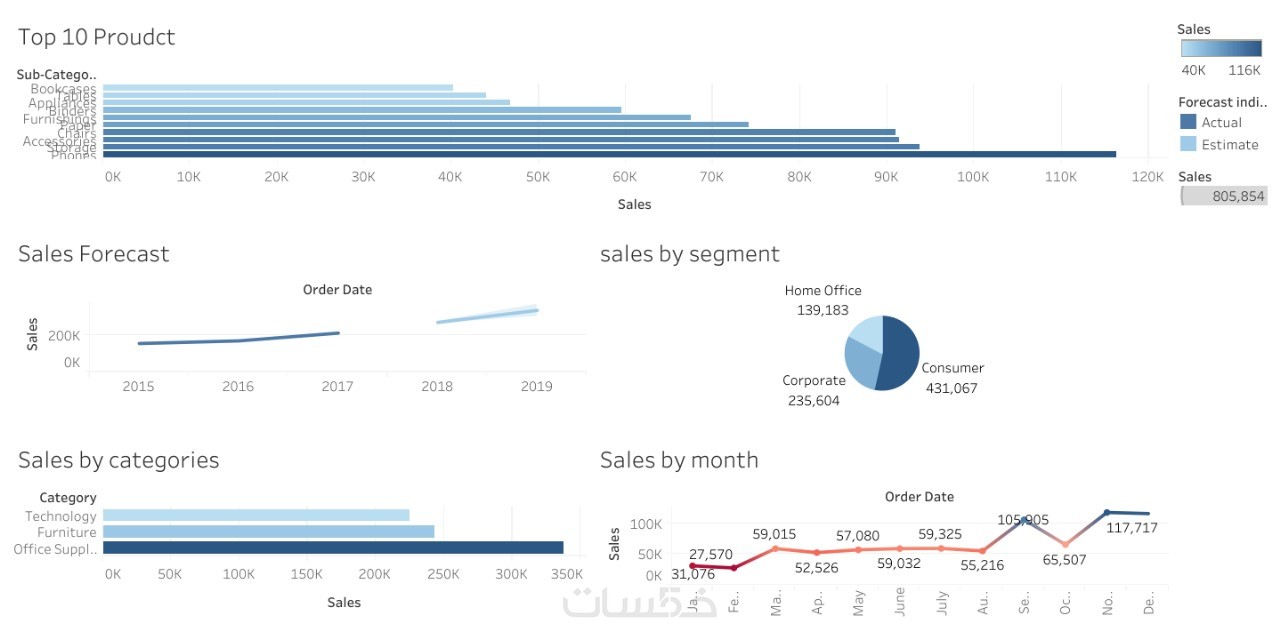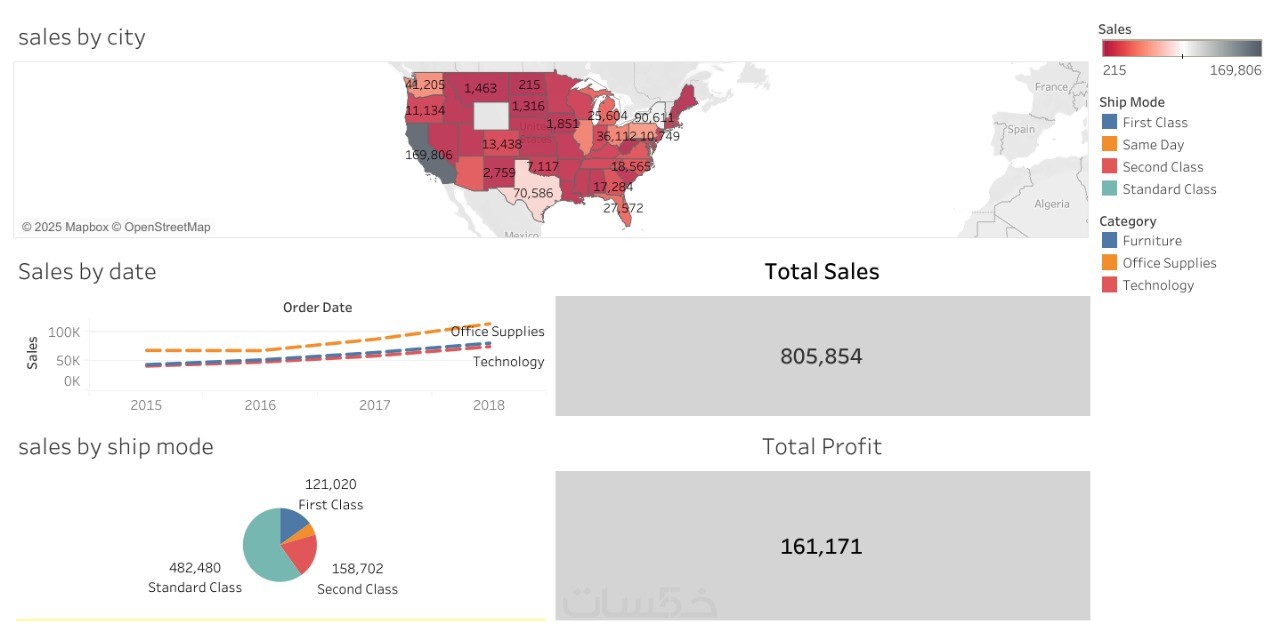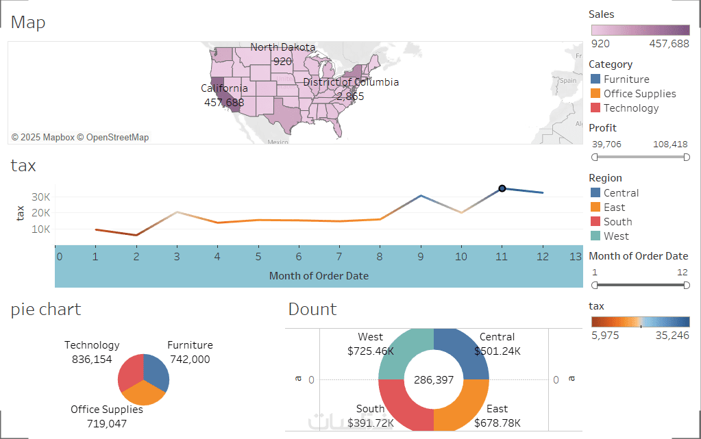 تصميم وتنفيذ لوحة معلومات تفاعلية لتحليل المبيعات